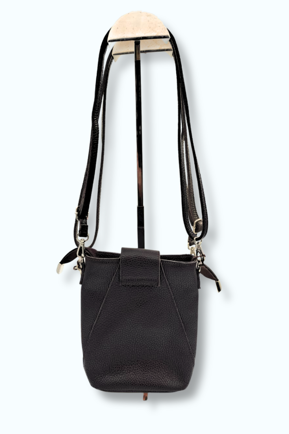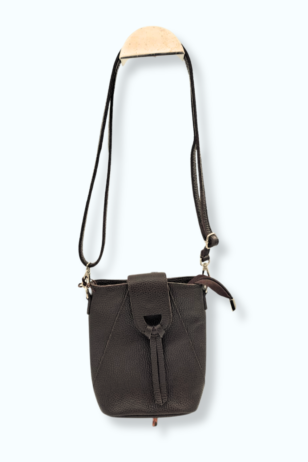 Lederen schoudertas in de kleur coffee. Gemaakt in Italië. Van het merk Giuliano. Bevat zilveren details en rits- en magneetsluiting. Ook te verkrijgen in de kleuren taupe, beige en bordeaux rood. L: 14cm D: 6cm H: 20cm