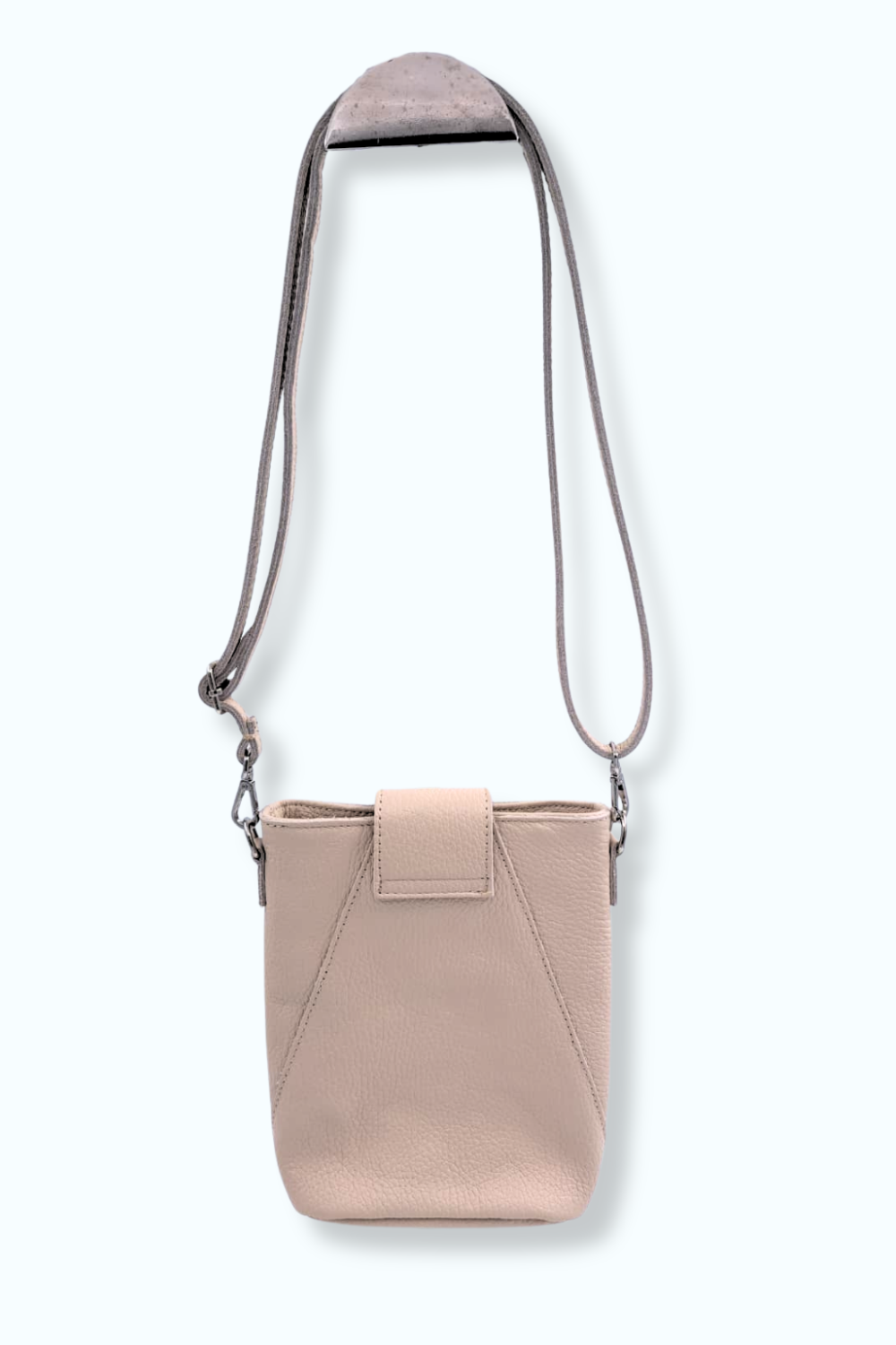 Lederen schoudertas in de kleur beige. Gemaakt in Italië. Van het merk Giuliano. Bevat zilveren details en rits- en magneetsluiting. Ook te verkrijgen in de kleuren coffee, taupe en bordeaux rood. L: 14cm D: 6cm H: 20cm
