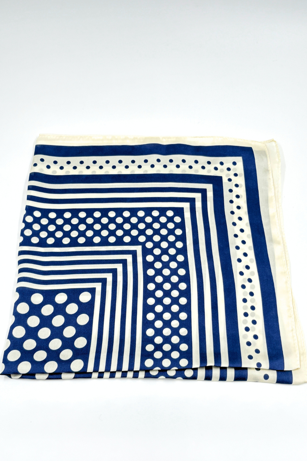 Zachte sjaal met een blauw/witte stip en streep-motief. Te dragen om de nek, maar ook leuk in het haar of aan een tas te knopen. Ook in het zwart/wit te verkrijgen.