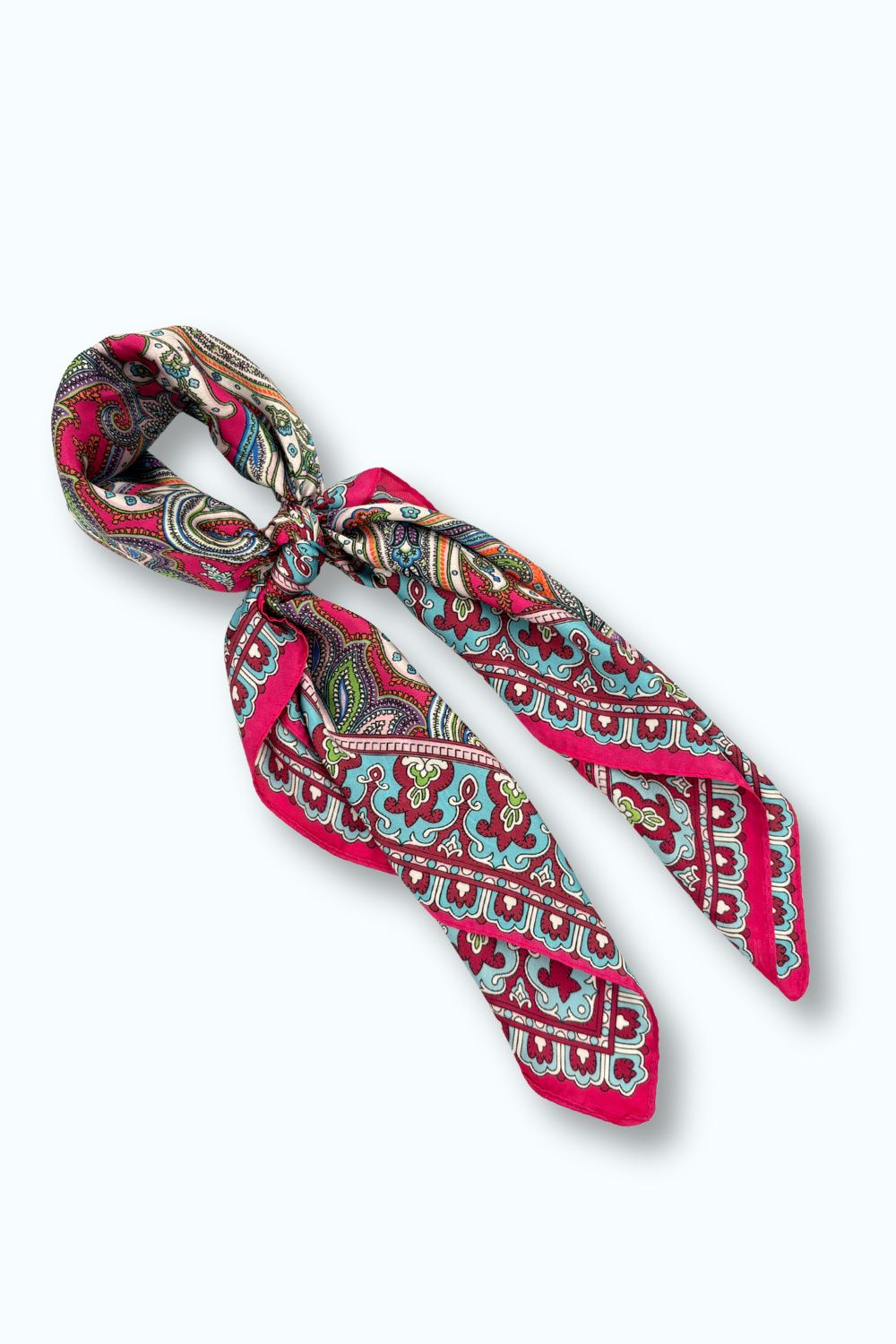 Zachte sjaal met multi colour-motief. Te dragen om de nek, maar ook leuk in het haar of aan een tas te knopen.
