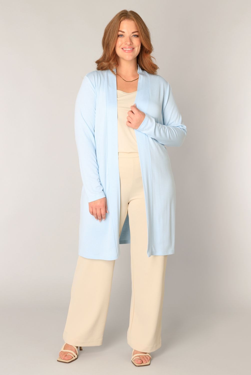 De Ayla Long van Base Level Curvy is een medium lang fijngebreid vest, gemaakt van een zachte viscosemix.