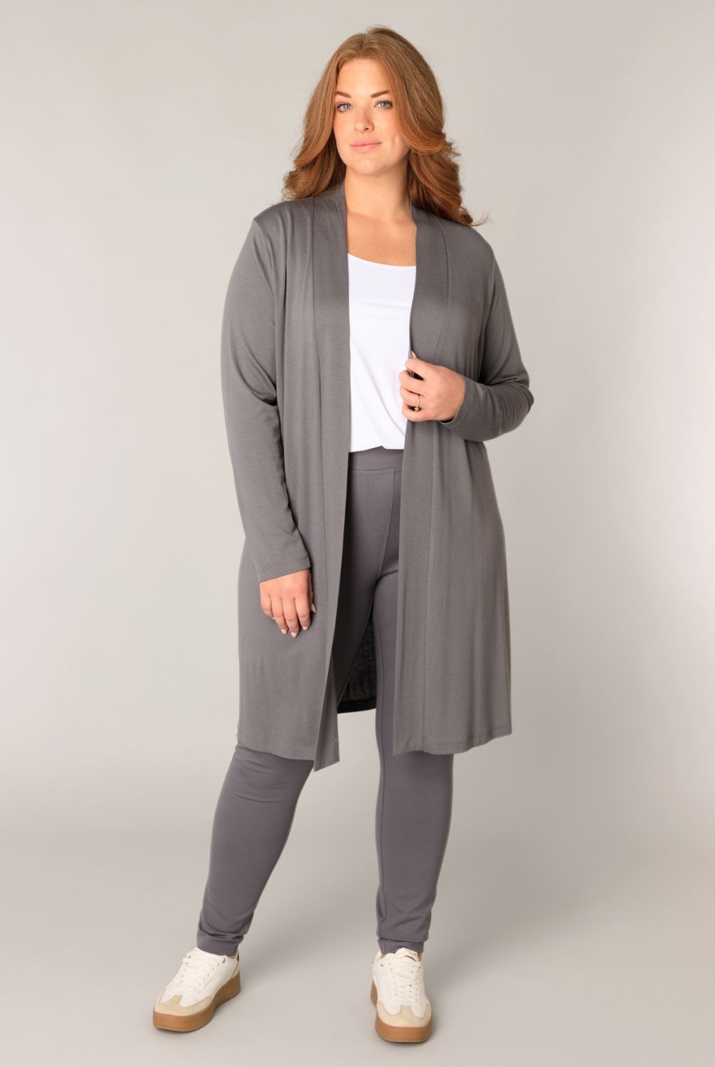 De Ayla Long van Base Level Curvy is een medium lang fijngebreid vest, gemaakt van een zachte viscosemix.