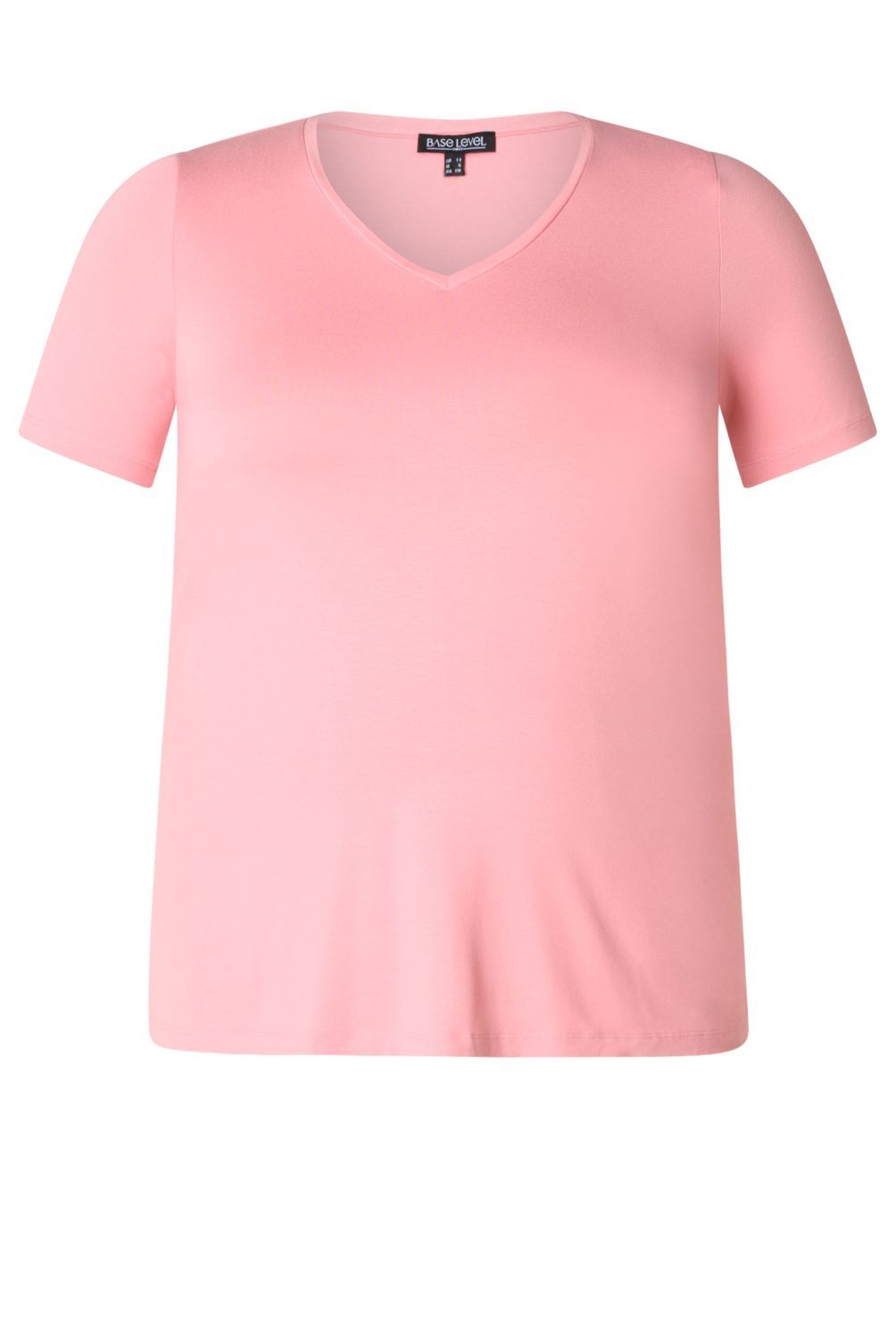 De Alba van Base Level Curvy is een recht T-shirt van een soepele viscosemix met een ronde halslijn en een omgeslagen zoom op de mouwen