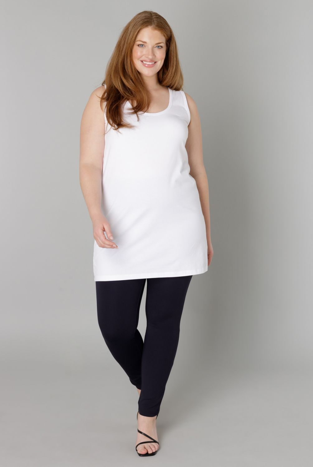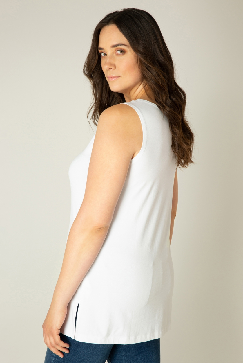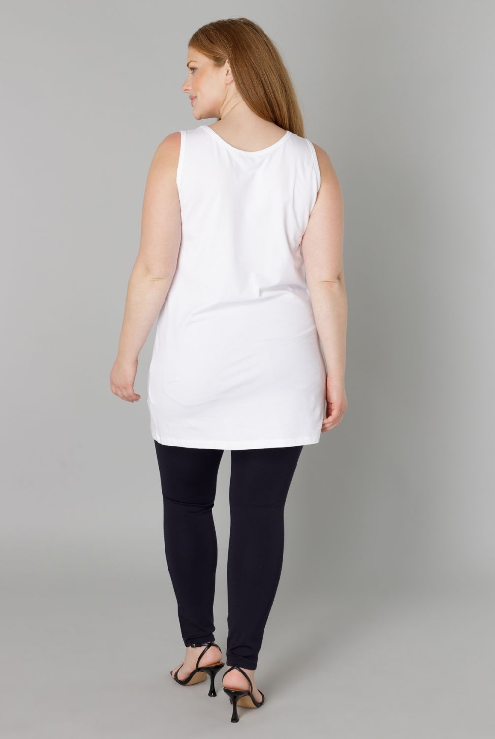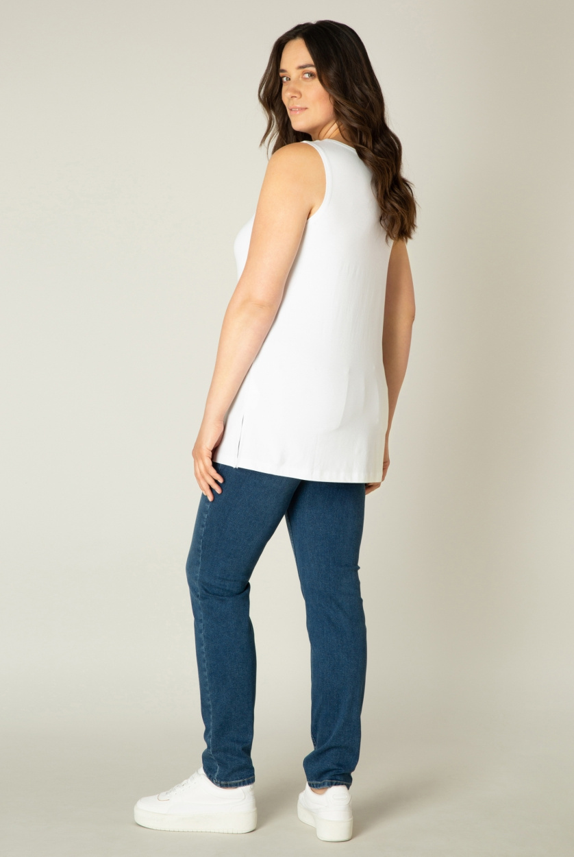 De Alicia van Base Level Curvy is een A-lijn top met brede banden in een zachte viscose kwaliteit. De top heeft een ronde hals en zijsplitten aan de onderkant.