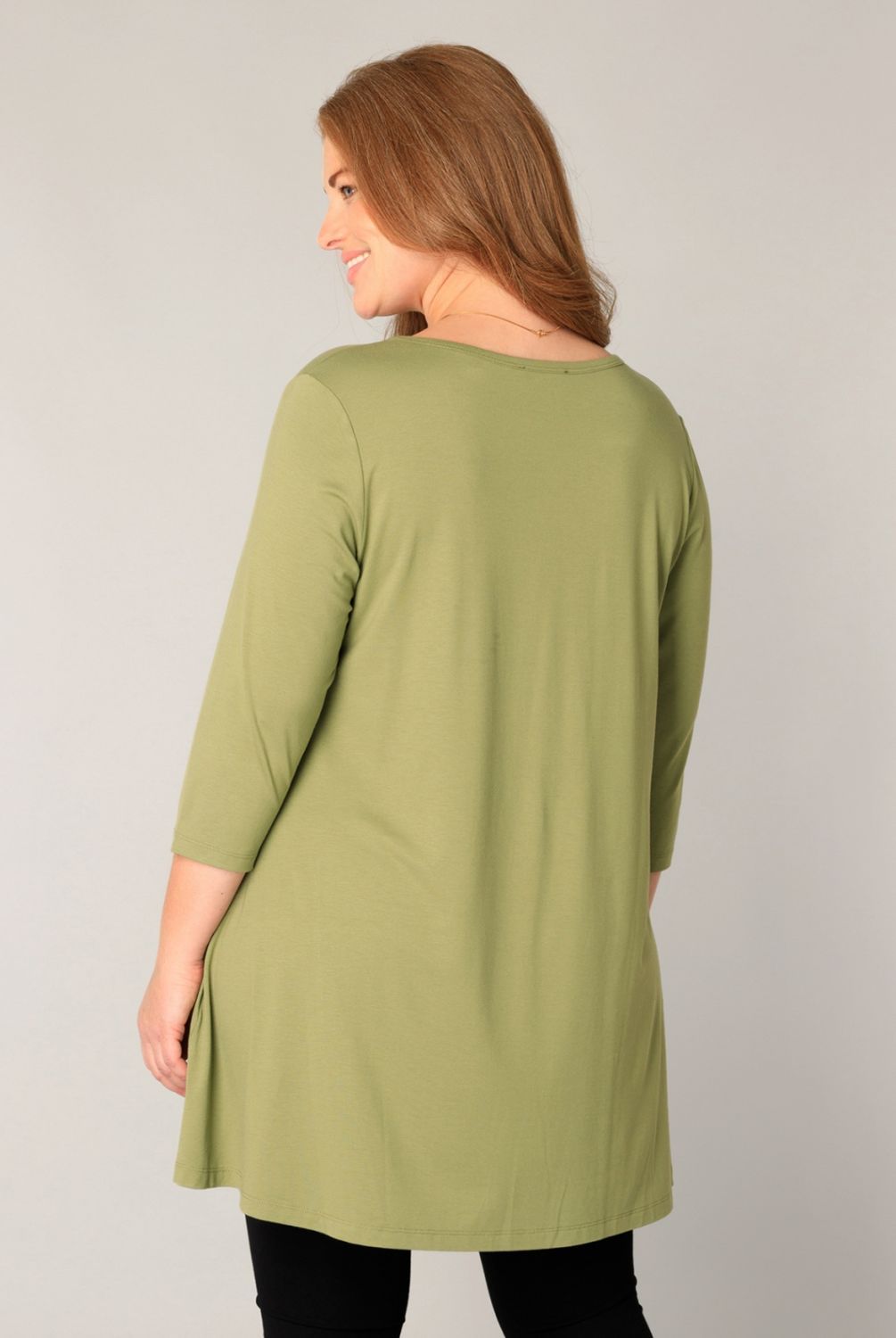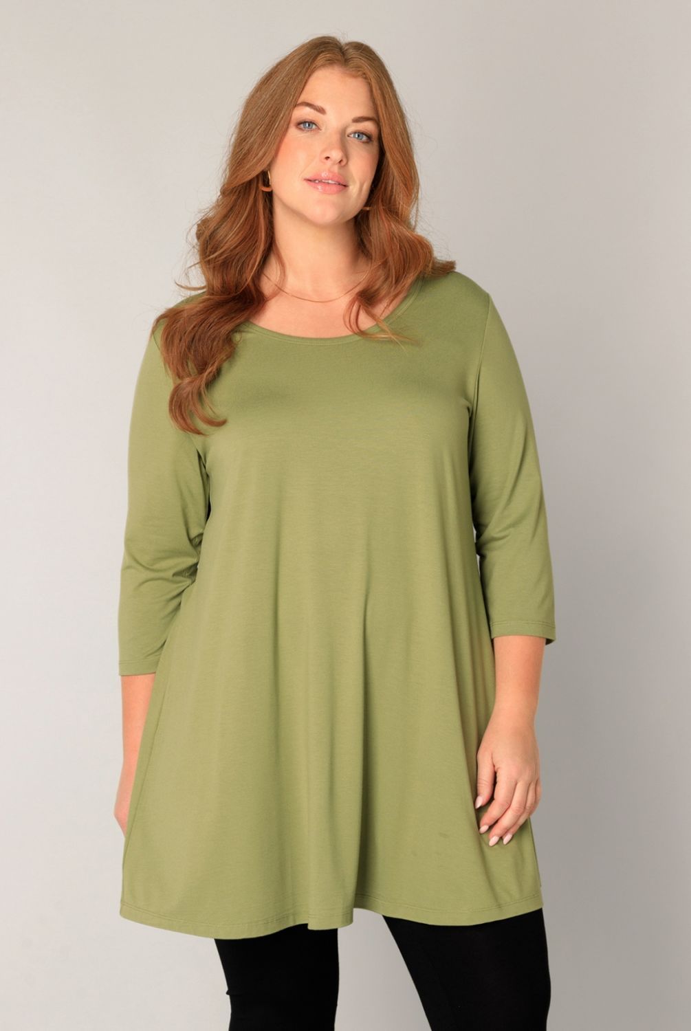 De Aria van Base Level Curvy is een A-lijn top met 3/4 mouw en een ronde hals van een zachte tricot viscose mix.