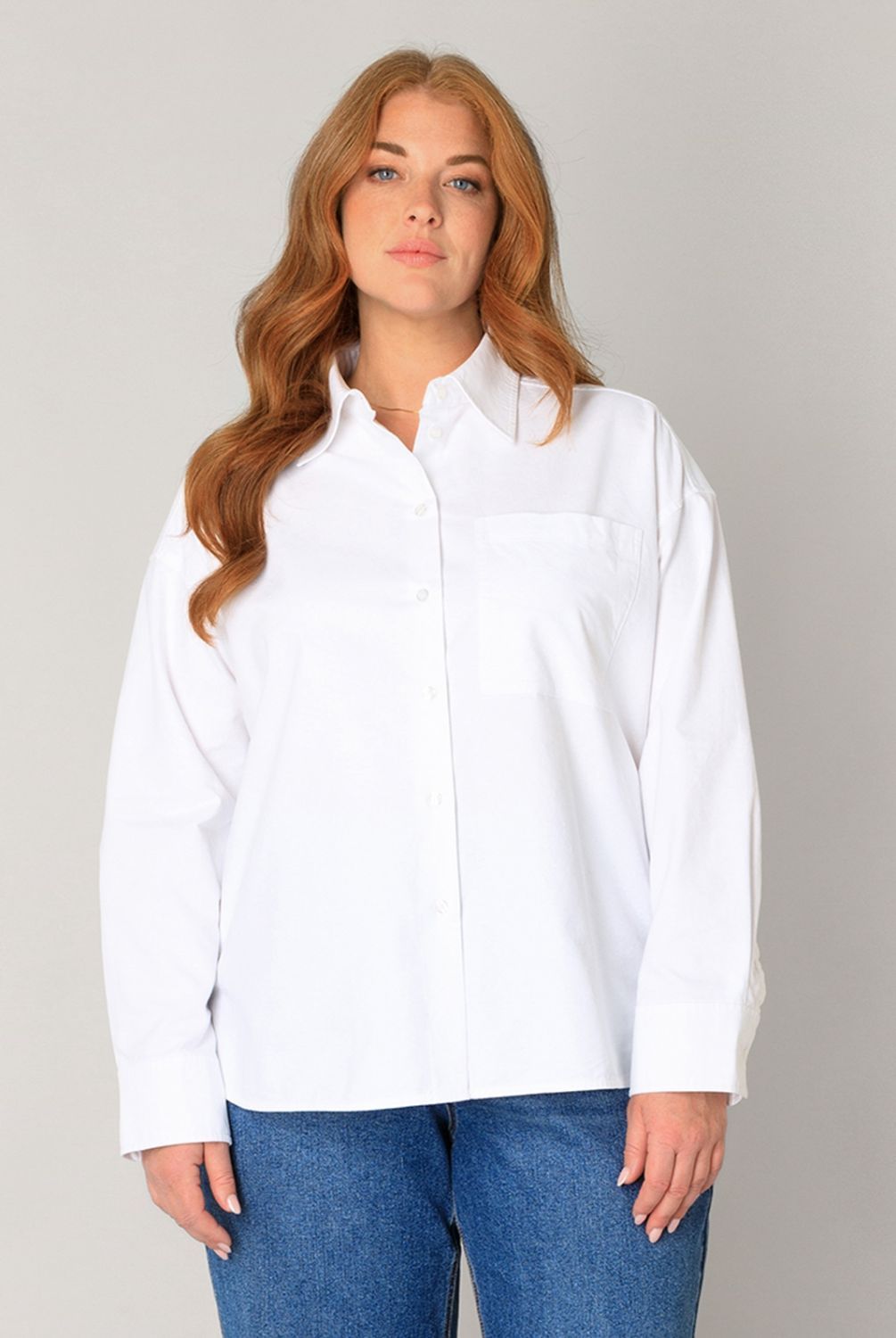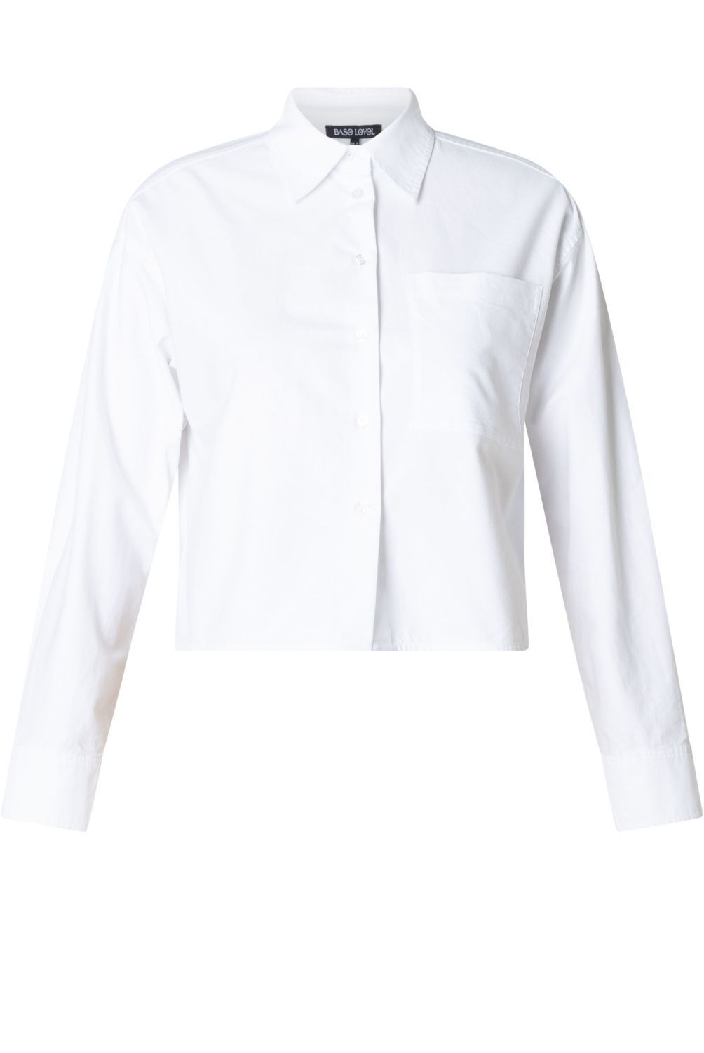 Een cropped blouse van lichtgewicht 100% katoen, met een relaxed fit, klassieke kraag en knoopsluiting aan de voorkant.