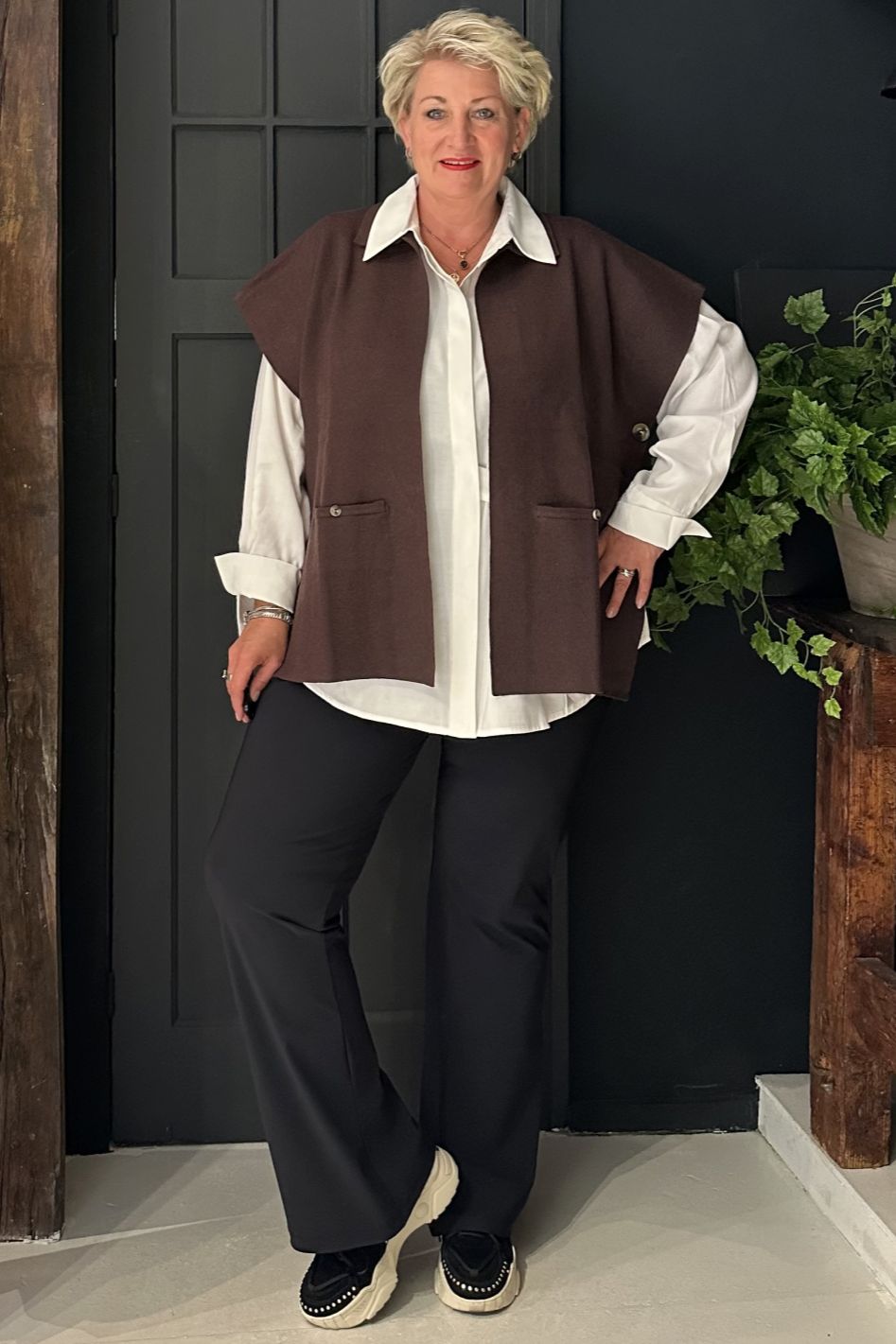 Korte, lange, geklede en heerlijke nonchalante vesten van de merken Mat fashion, Plusbasics, Yesta, Zhenzi, Exxcellent, Via Appia DUE; voor ieder wat wils bij Frommes.