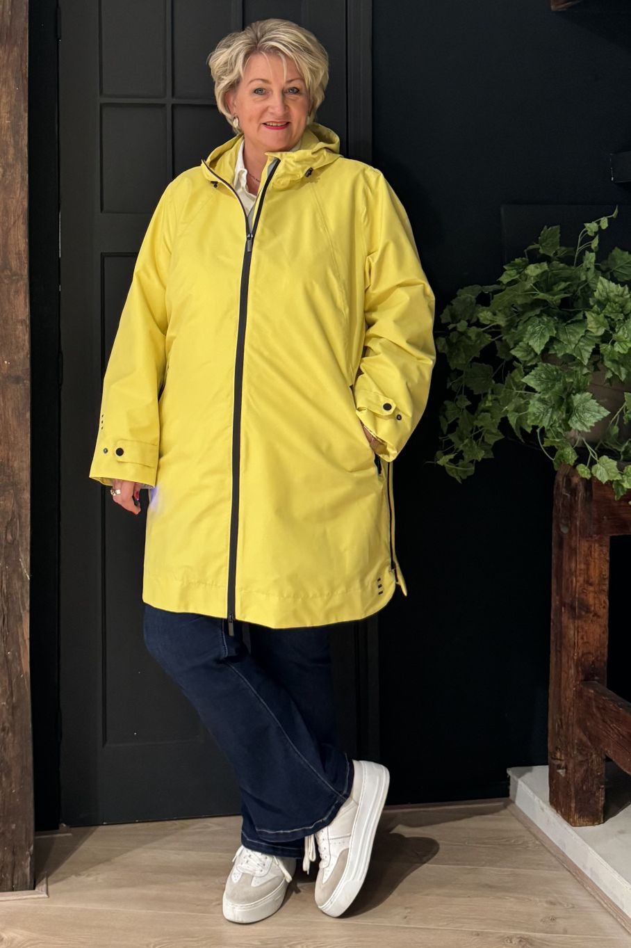 Het regenjack is 95 cm lang en is verkrijgbaar tot maat 54.