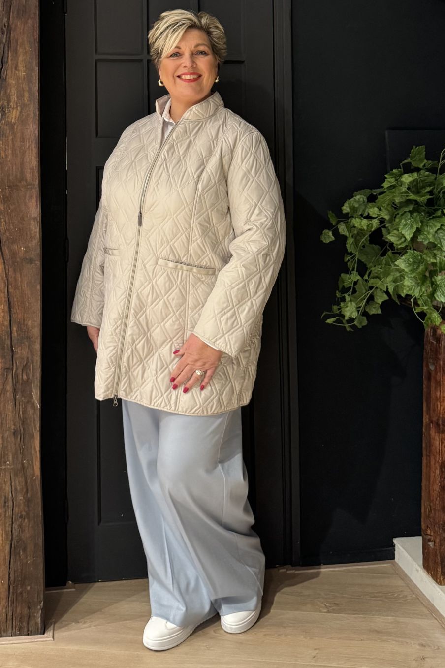 De jas heeft een 2-weg ritssluiting en een opstaande kraag.