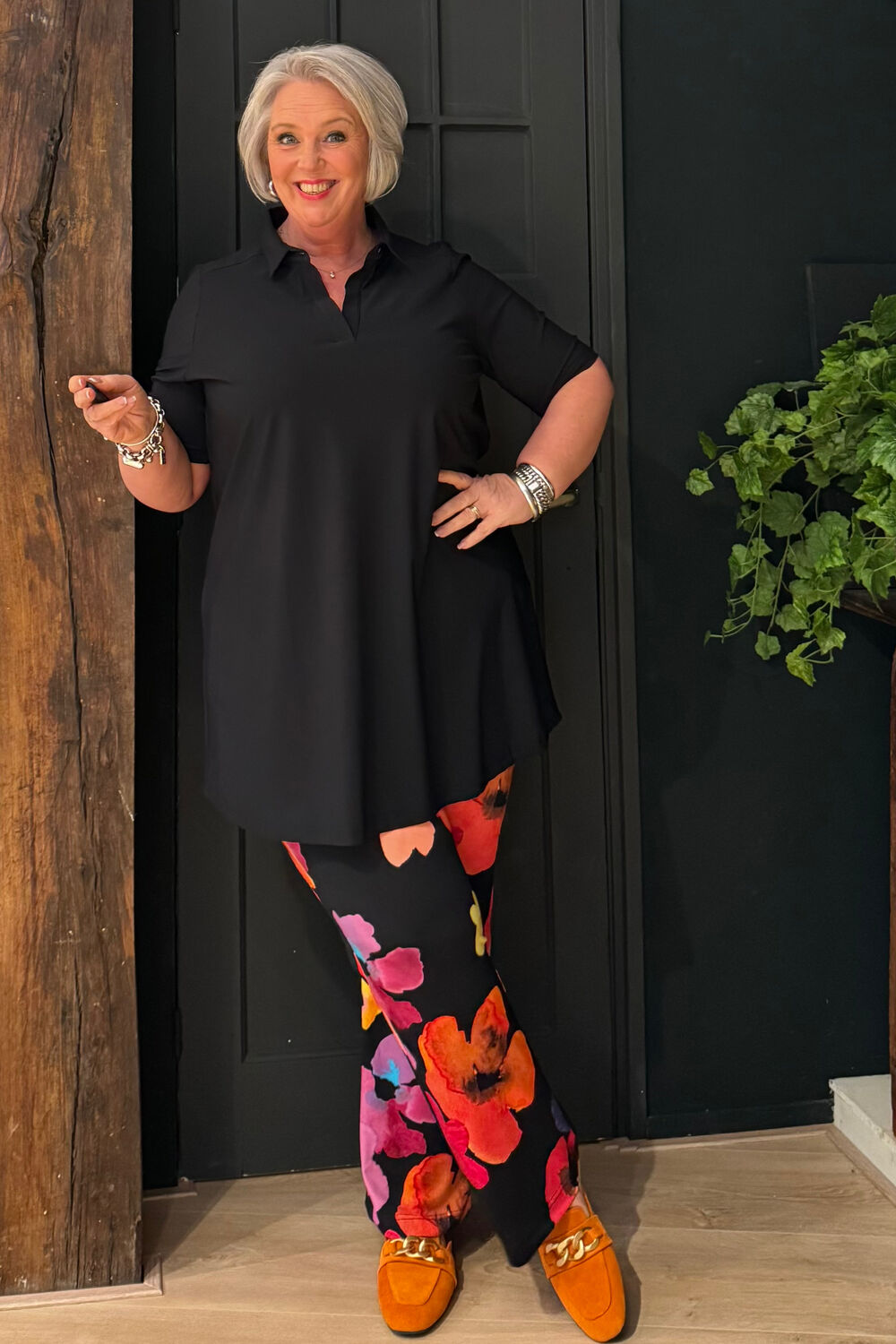 Durf te stralen in deze broek met expressieve bloemenprint! De kleurrijke print springt eruit en geeft elke outfit karakter. De zachte jersey voelt comfortabel aan, rekt prettig mee en blijft prachtig in vorm. Dankzij het rechte, iets wijdere model en de fijne zakken combineer je moeiteloos stijl met gemak. Een echte blikvanger voor maat 44 t/m 60.