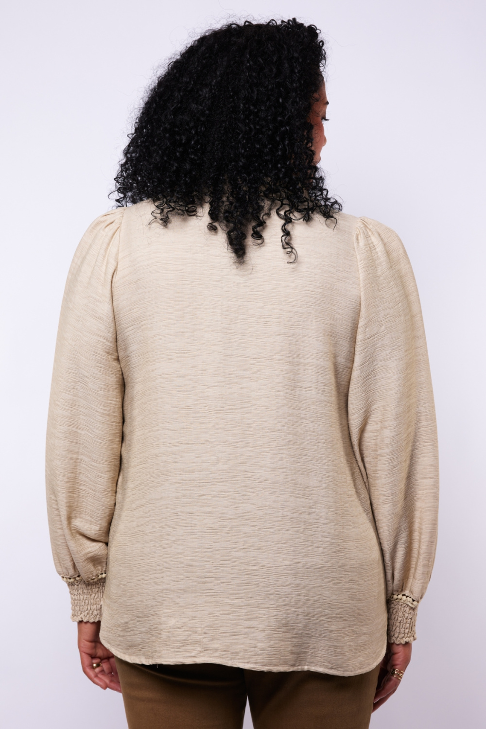 De Eden blouse straalt elegantie uit door de subtiele details langs de knoopsluiting en de vrouwelijke pofmouwen. De smockmanchetten zorgen voor een mooi volume in de mouwen en geven het geheel een speelse touch. Een veelzijdig item dat je zowel casual kunt dragen met een jeans als gekleed met een rok of pantalon.