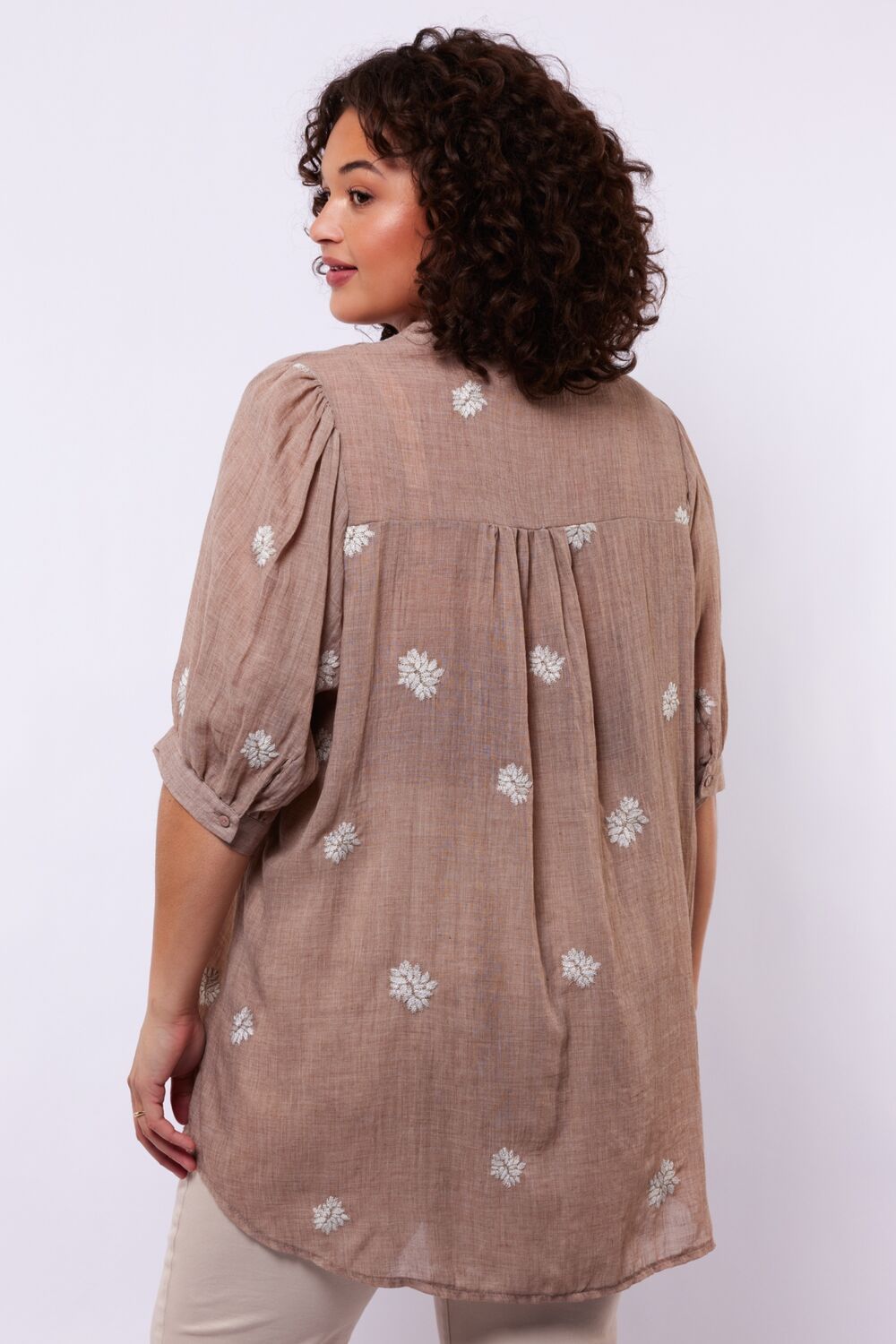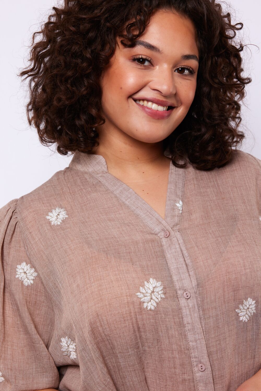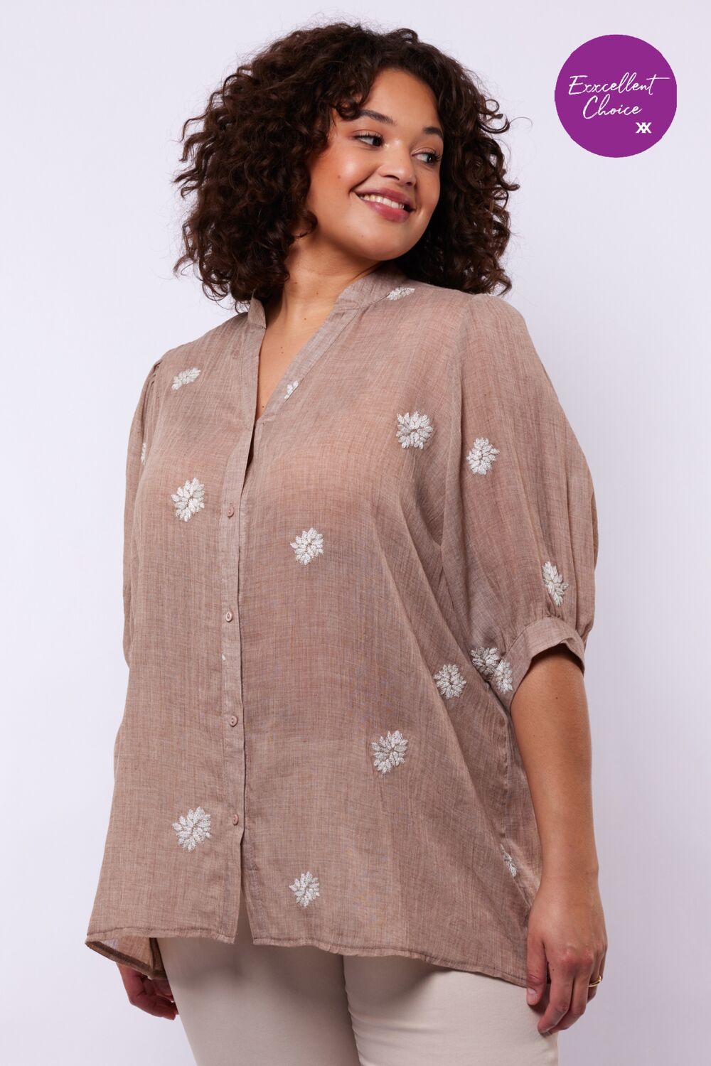 Een luchtige blouse met een zachte, vrouwelijke uitstraling. De Khloe blouse heeft een soepelvallende pasvorm, een subtiele opstaande hals en een doorknoopsluiting die zorgen voor een elegante basis. Het verfijnde borduurwerk geeft het ontwerp een speels en ambachtelijk karakter, terwijl de lichte stof comfortabel met je meebeweegt. Een geliefd item binnen onze collectie, jouw Exxcellent Choice.