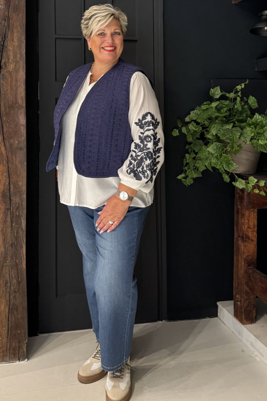 Op zoek naar een uniek laagje voor het najaar? De Jenna gilet met broderie anglaise en subtiele pailletten is het antwoord. Het gewatteerde binnenwerk houdt je warm, terwijl de eyecatching buitenkant elke outfit een feestelijk accent geeft.