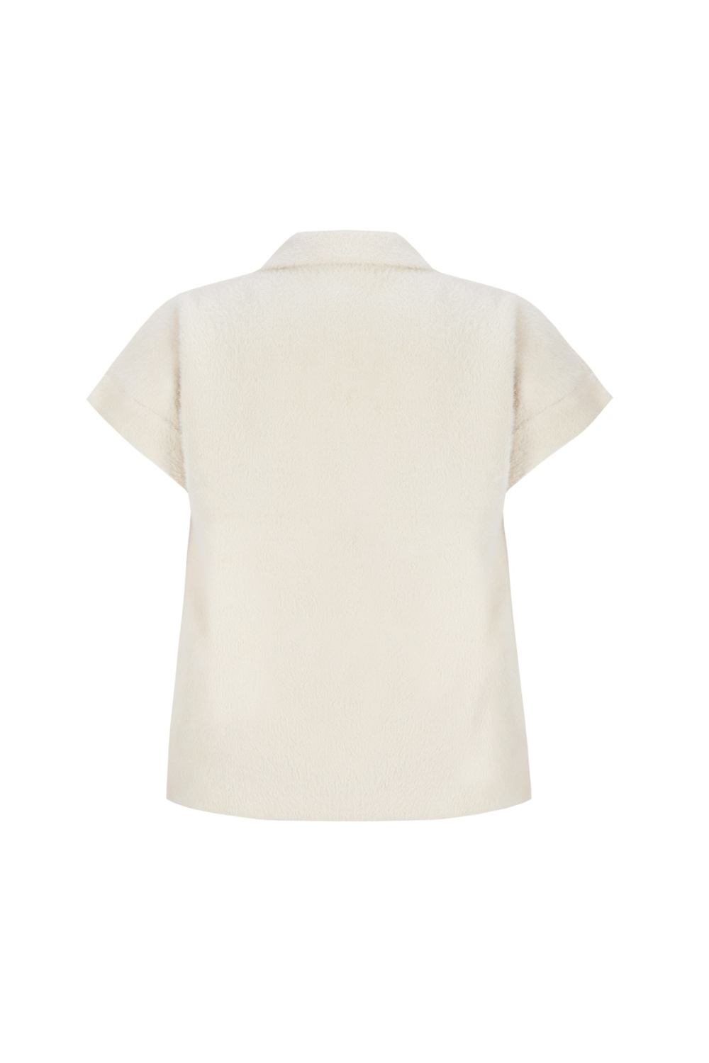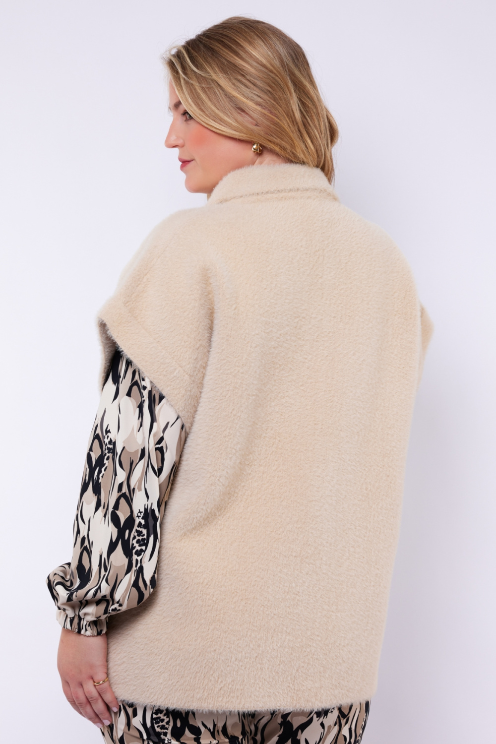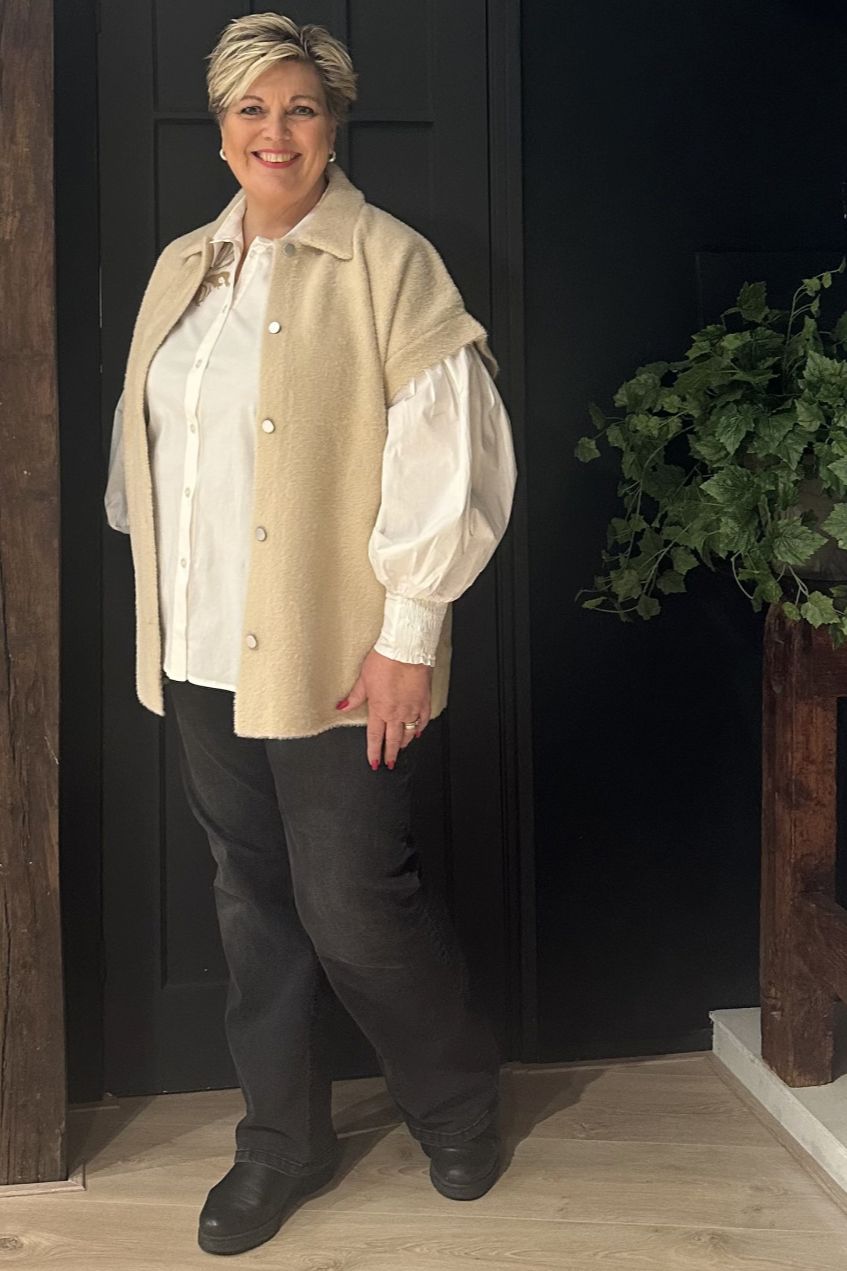 Een moderne laagjesfavoriet met een zachte touch. Het Laurena gilet heeft een comfortabele, teddyachtige structuur en korte mouwen voor een eigentijdse look. De kraag en knoopsluiting geven het item een stoere, maar vrouwelijke uitstraling, perfect om eindeloos te combineren. Dit item valt normaal. Kies jouw normale maat.