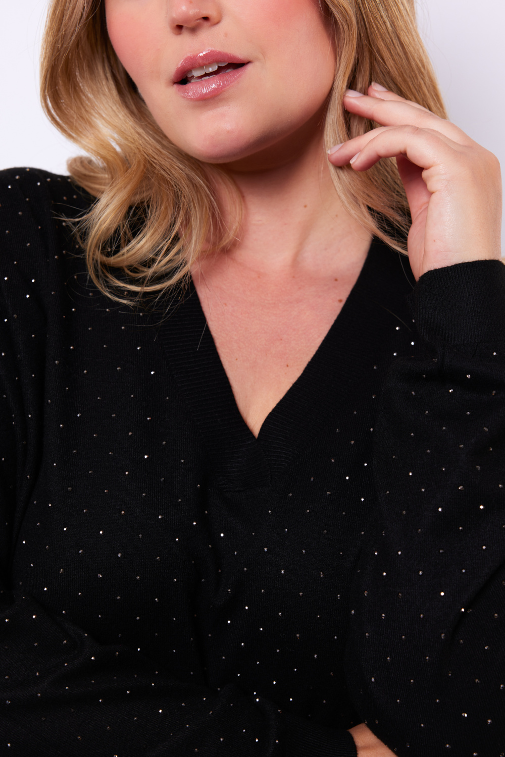 Deze fijne Gabrielle trui is versierd met kleine stras details voor een subtiele sparkle. De V-hals en lange mouwen maken het een veelzijdig item dat zowel chic als casual gedragen kan worden. Perfect te combineren met een jeans of rok