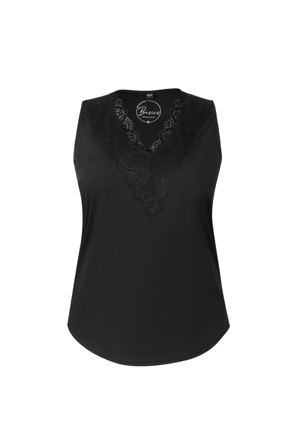 De Elsa top is een veelzijdige basic die perfect is voor het voorjaarsseizoen, maar ook het hele jaar door gedragen kan worden. De top heeft een mouwloos design, een elegante V-hals en een verfijnd kanten detail, wat het een vrouwelijke en tijdloze uitstraling geeft.