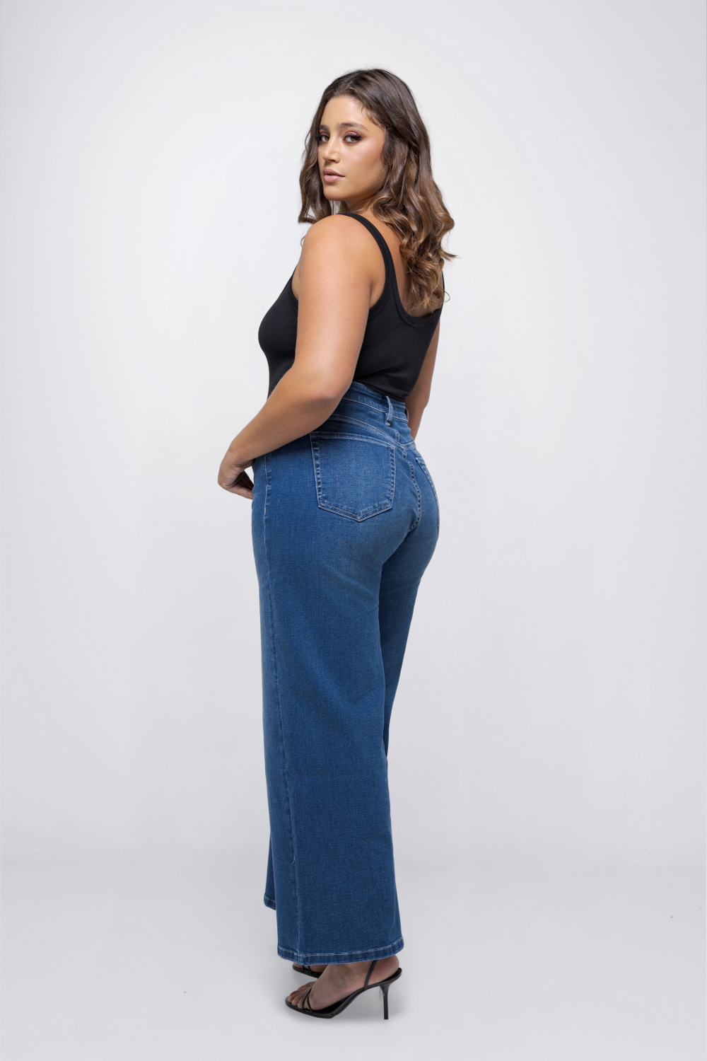• High-rise wide leg, ontworpen om curves te flatteren en een uitgebalanceerd silhouet te creëren