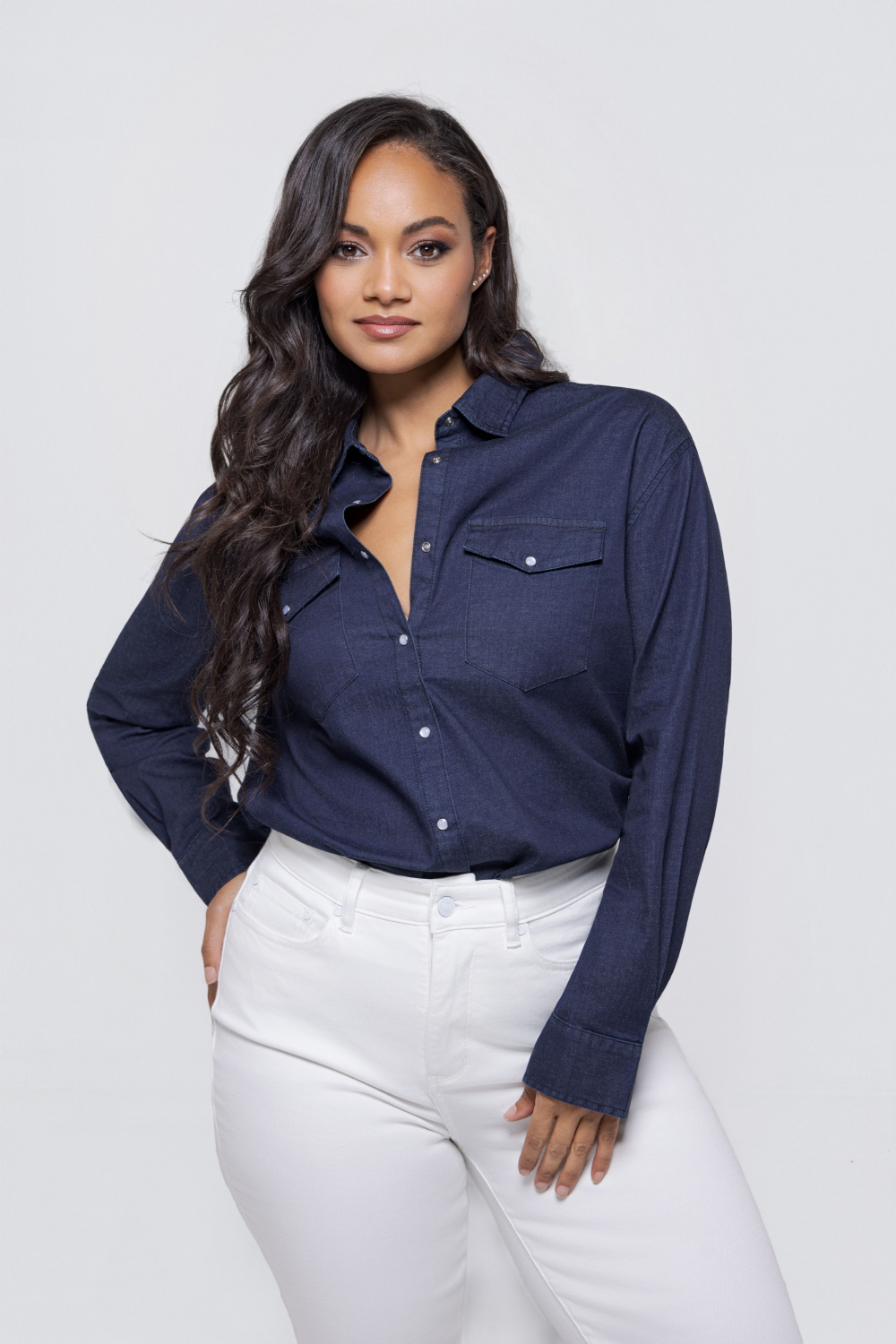 • Klassieke overhemdkraag en sluiting met drukknoopjes