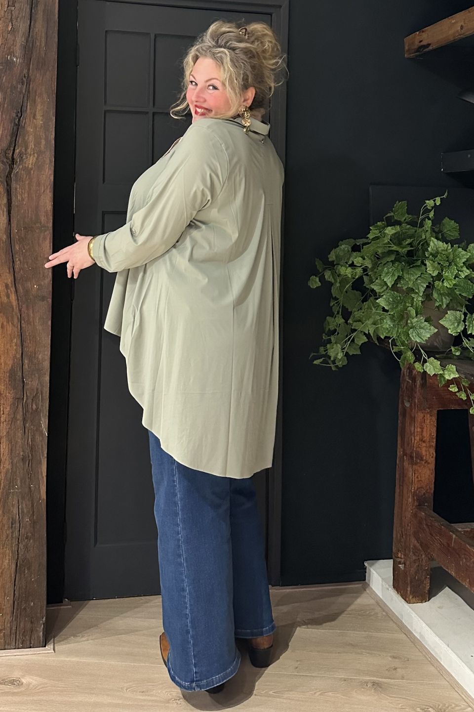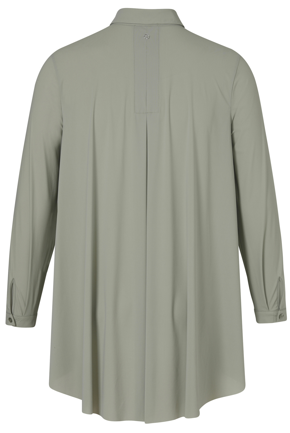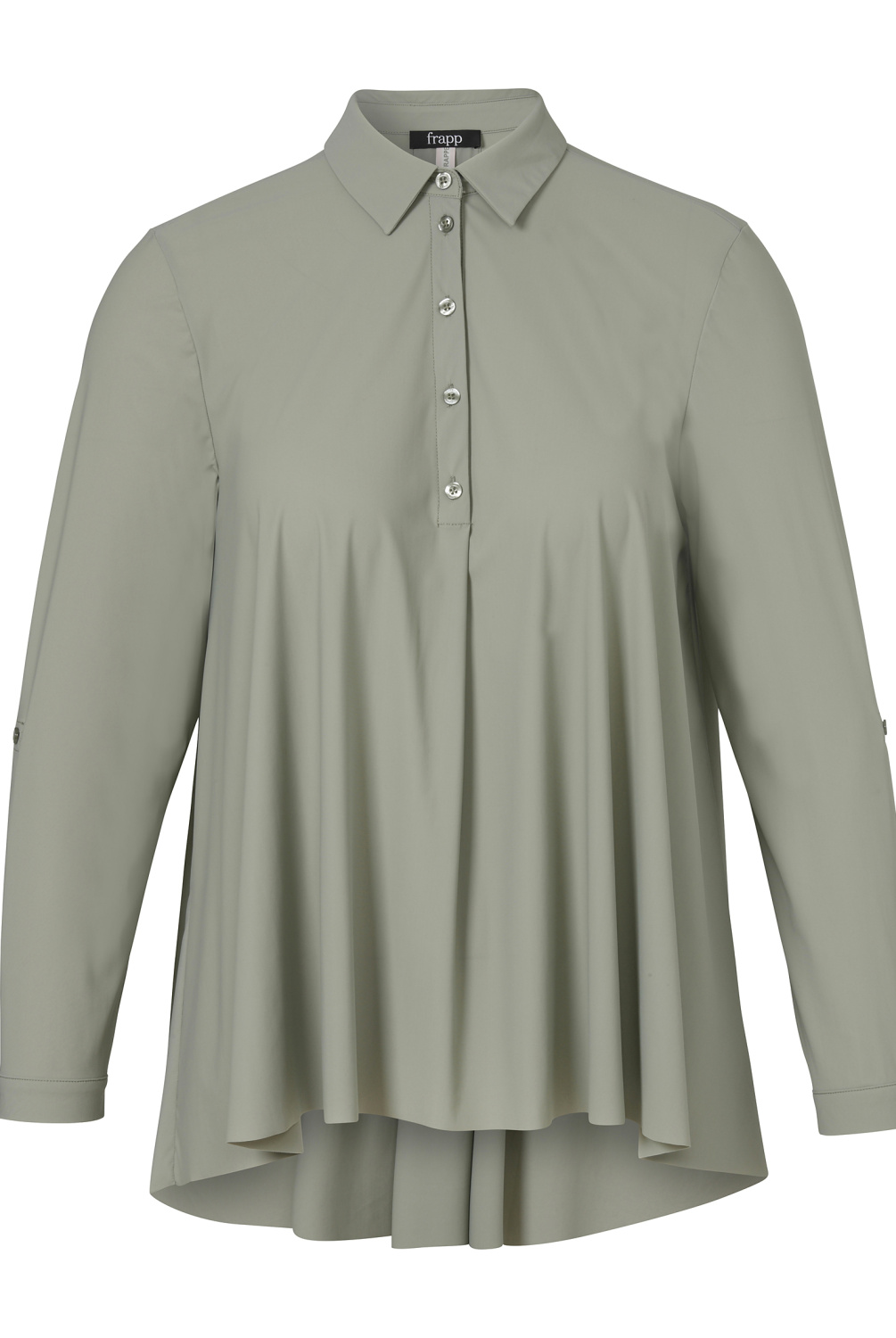 Blouse met overhemdkraag en lange mouwen, raw cut, langere achterzijde