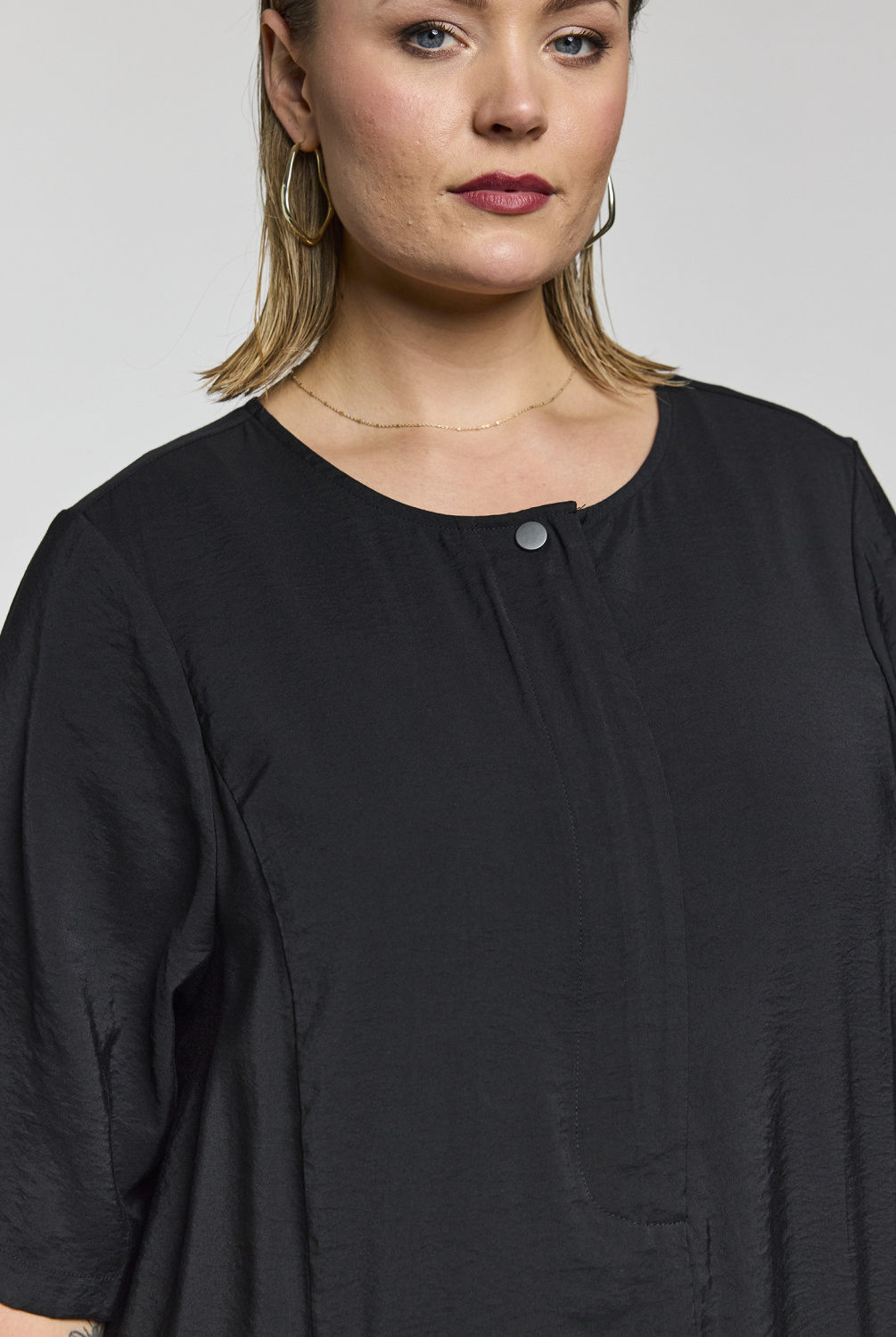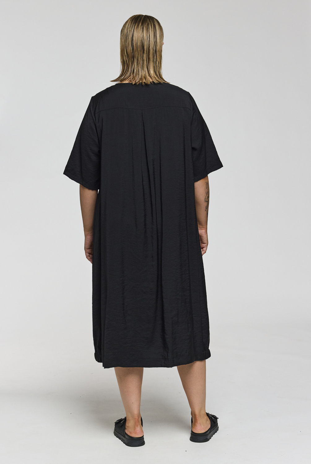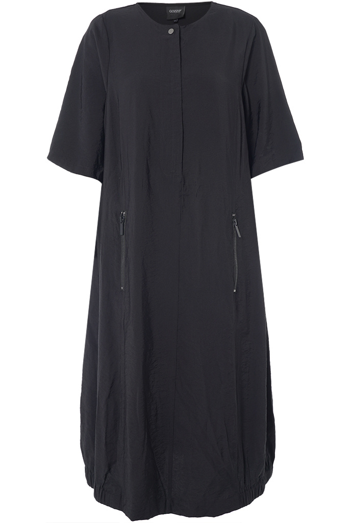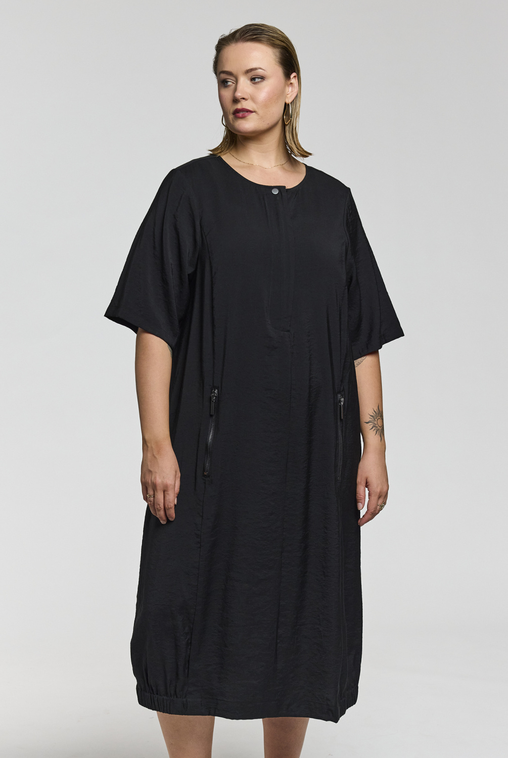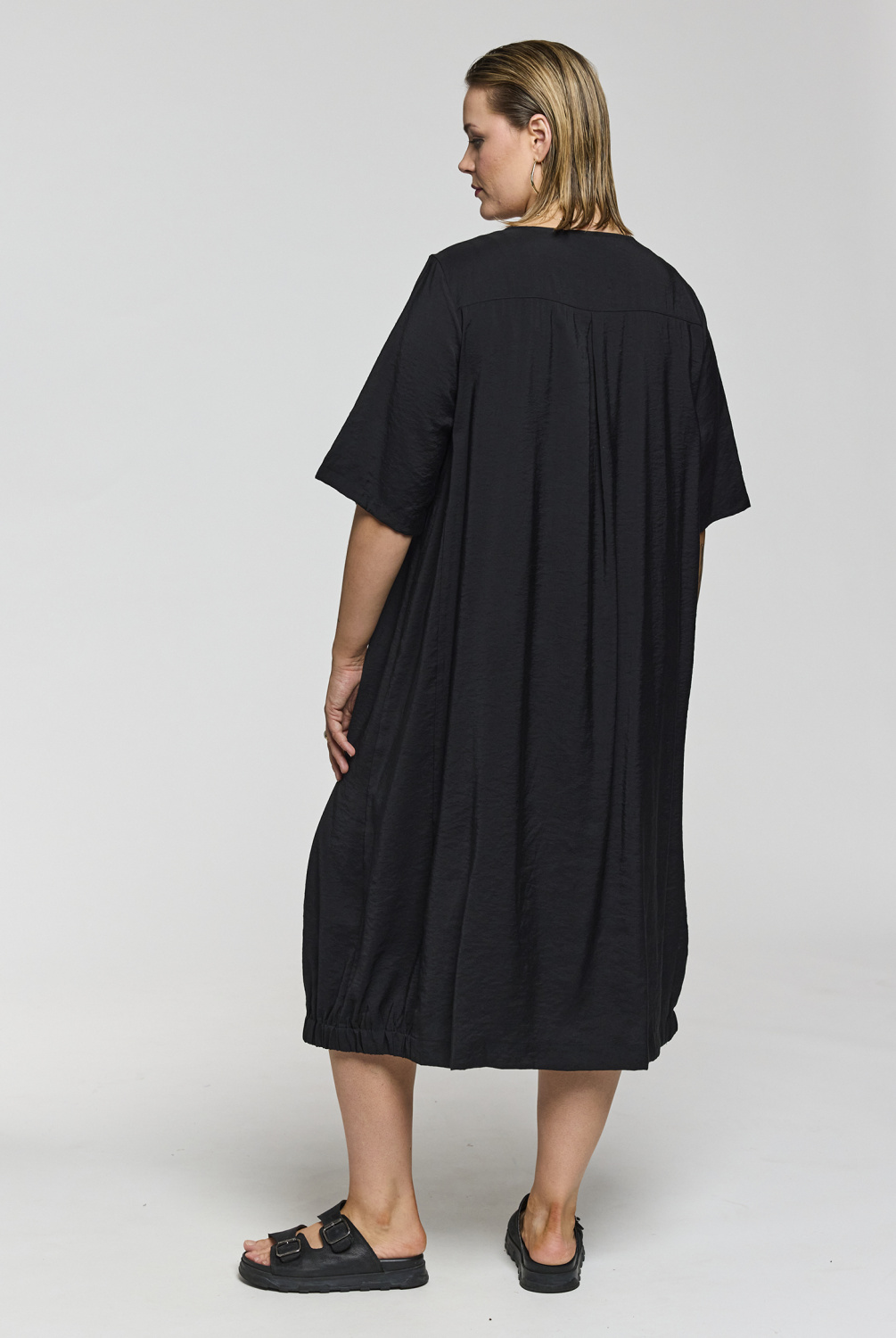 Jurk met een minimalistische uitstraling. Het ontwerp heeft een losse vorm met zachte volume.