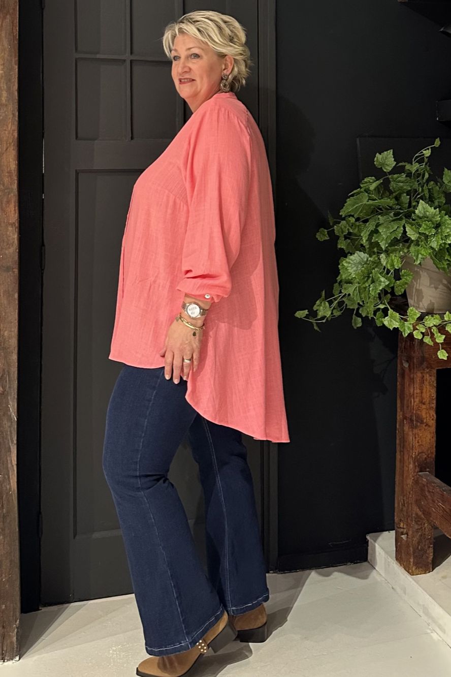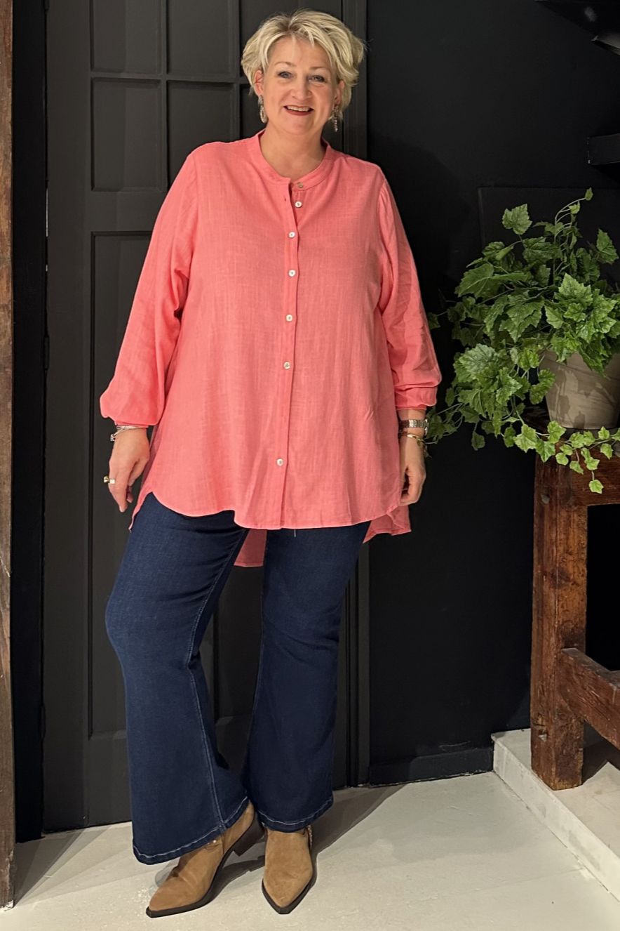 Klassieke tuniek met een losse en luchtige pasvorm met een opvallende asymmetrische zoom, wat zorgt voor een moderne en dynamische look.