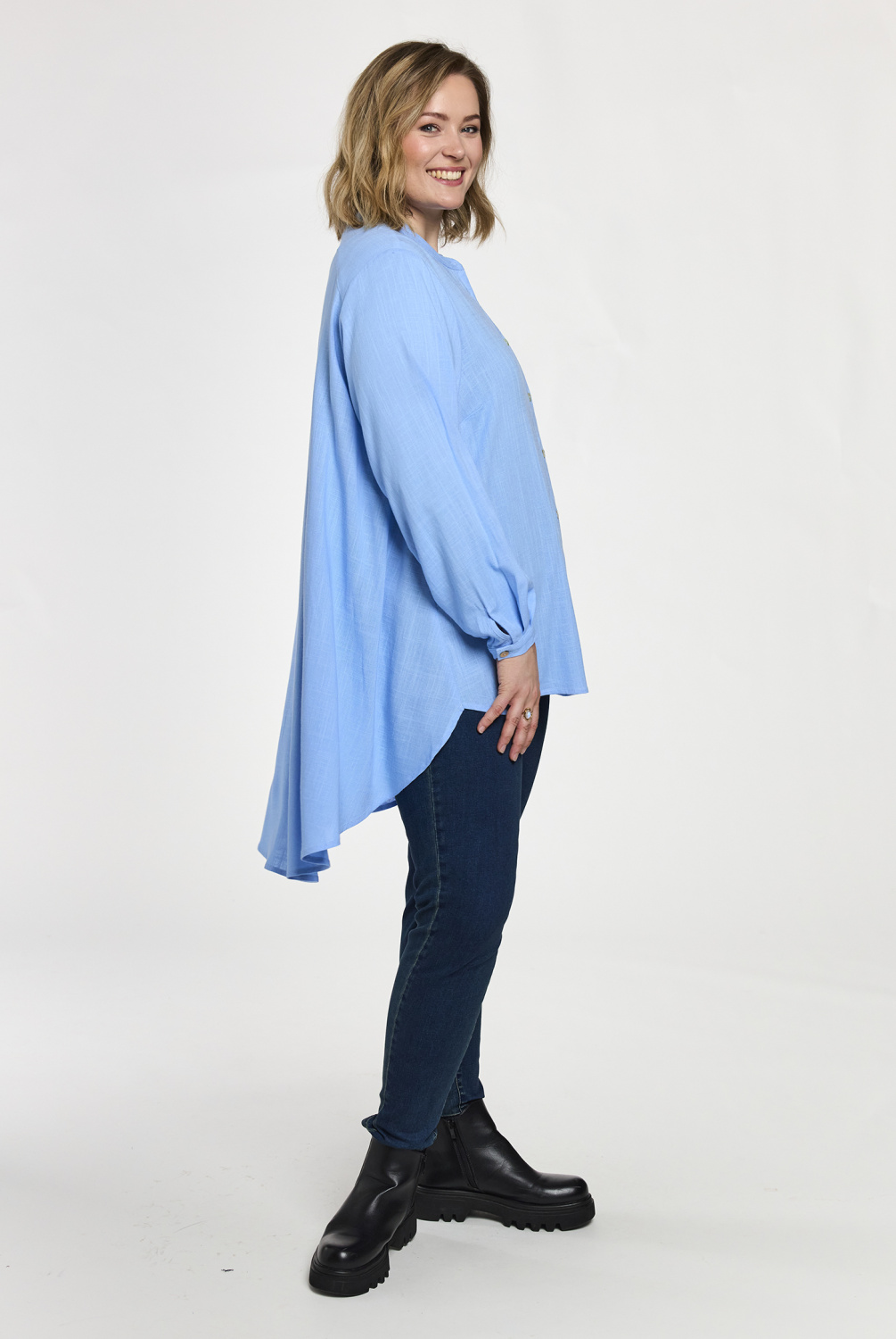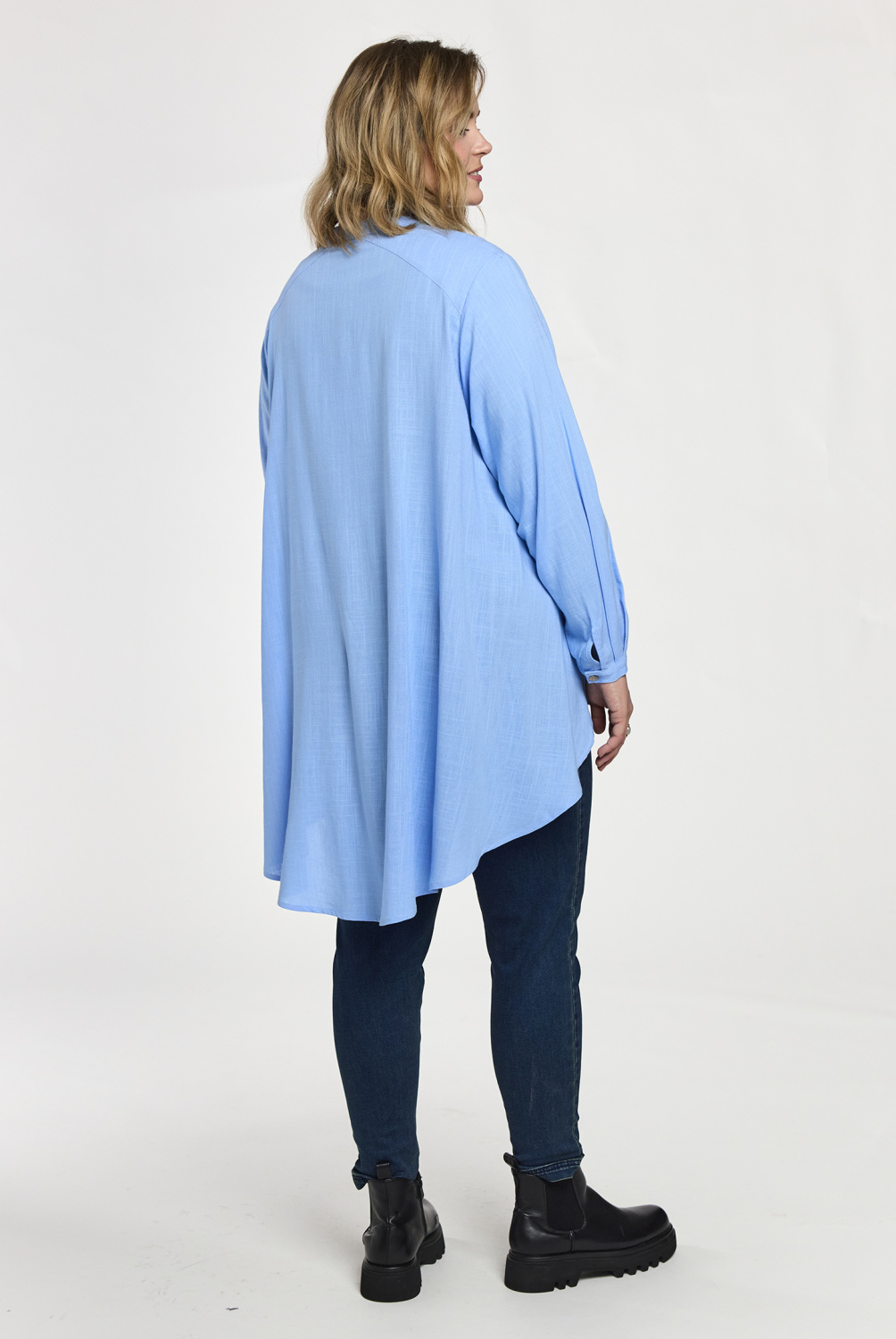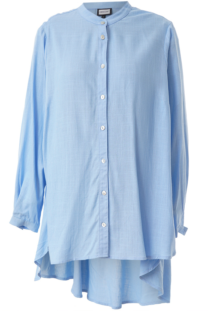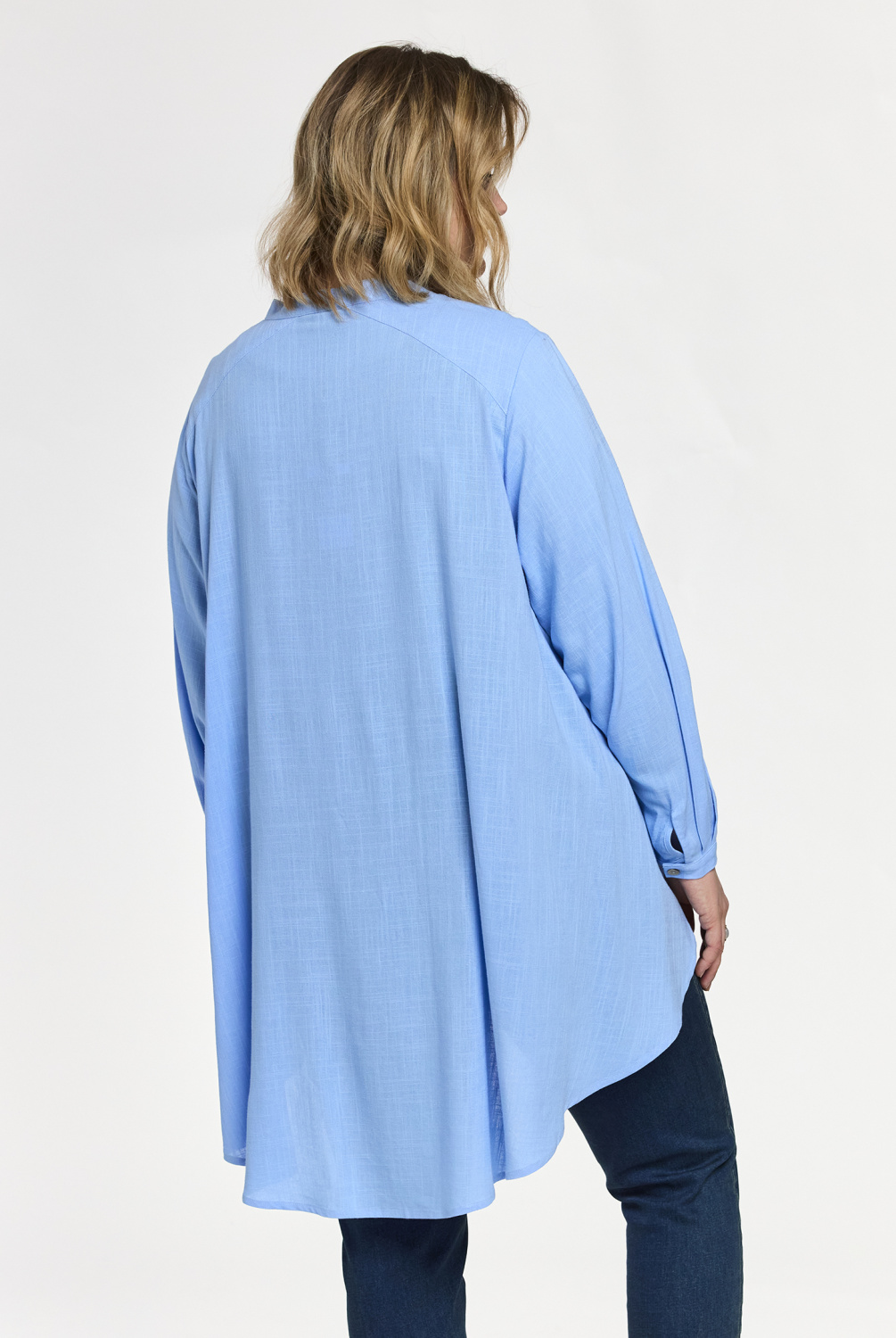 Klassieke tuniek met een losse en luchtige pasvorm met een opvallende asymmetrische zoom, wat zorgt voor een moderne en dynamische look.