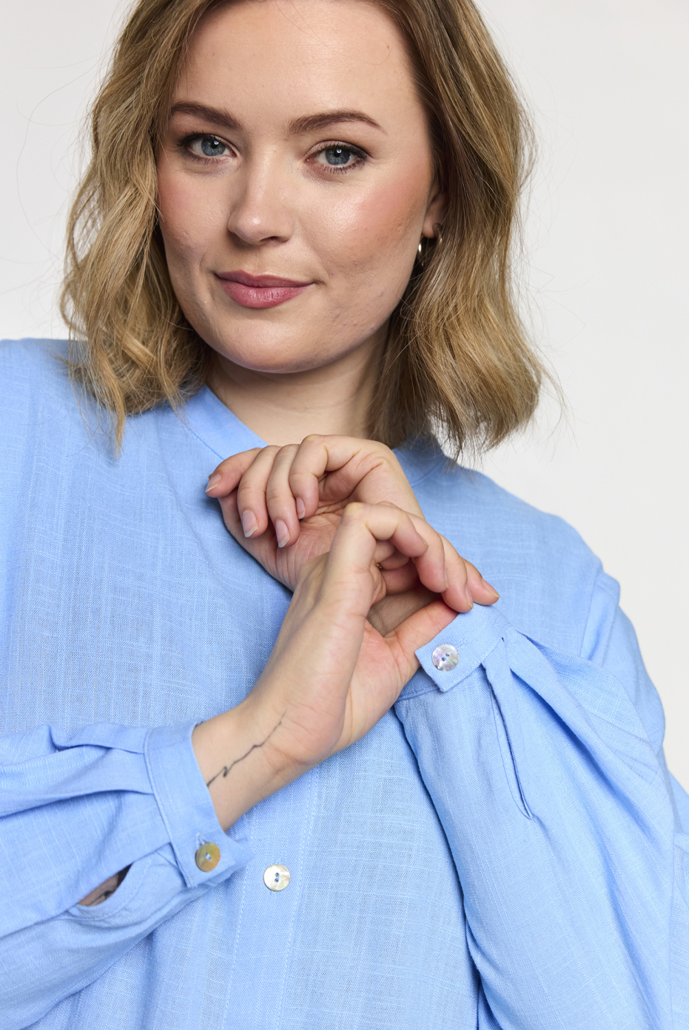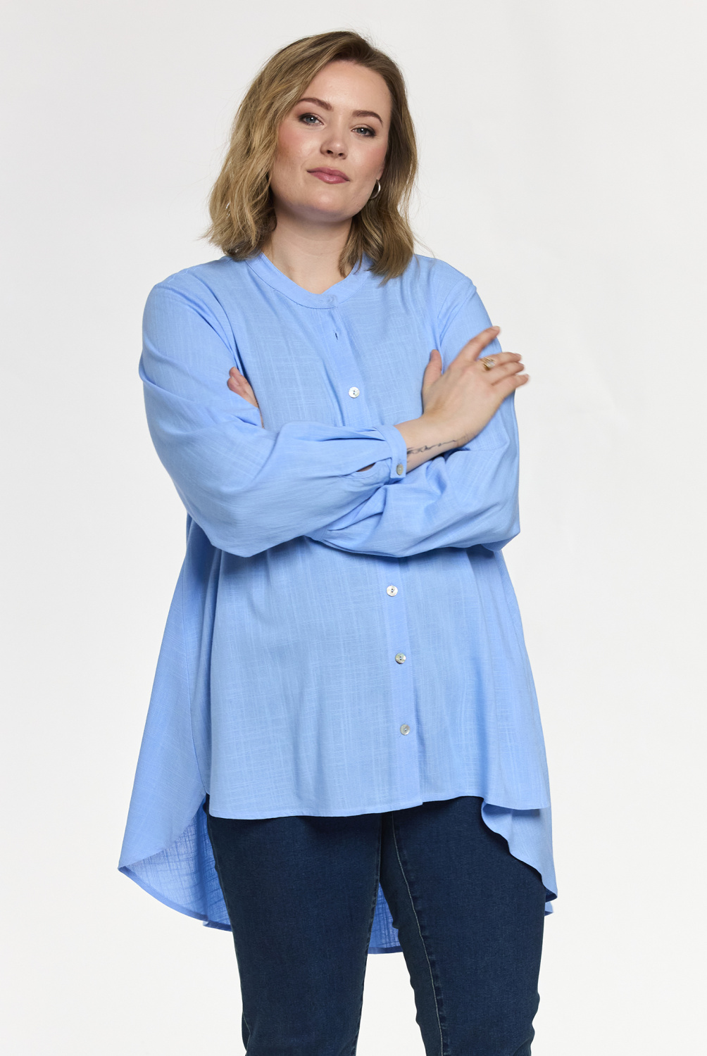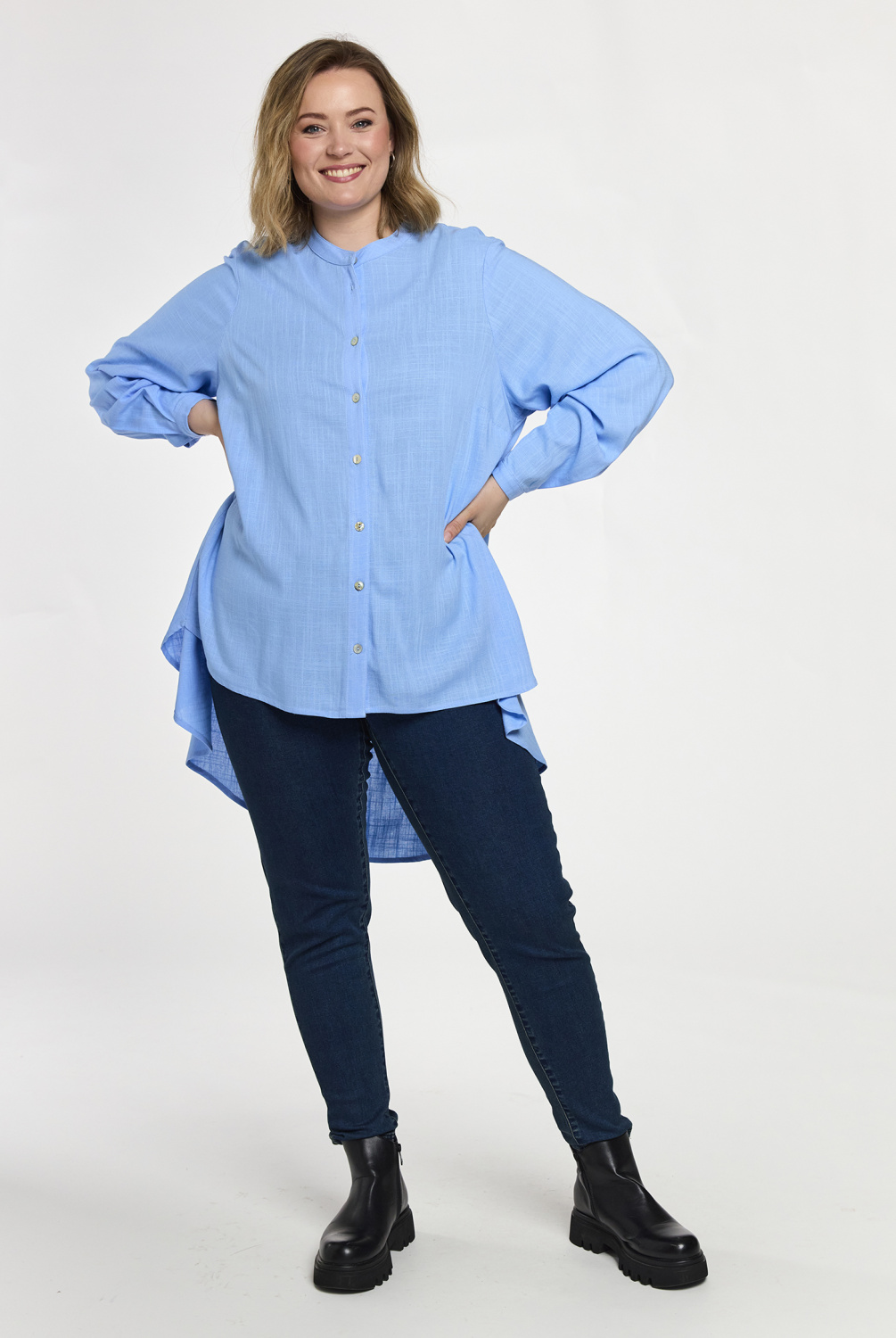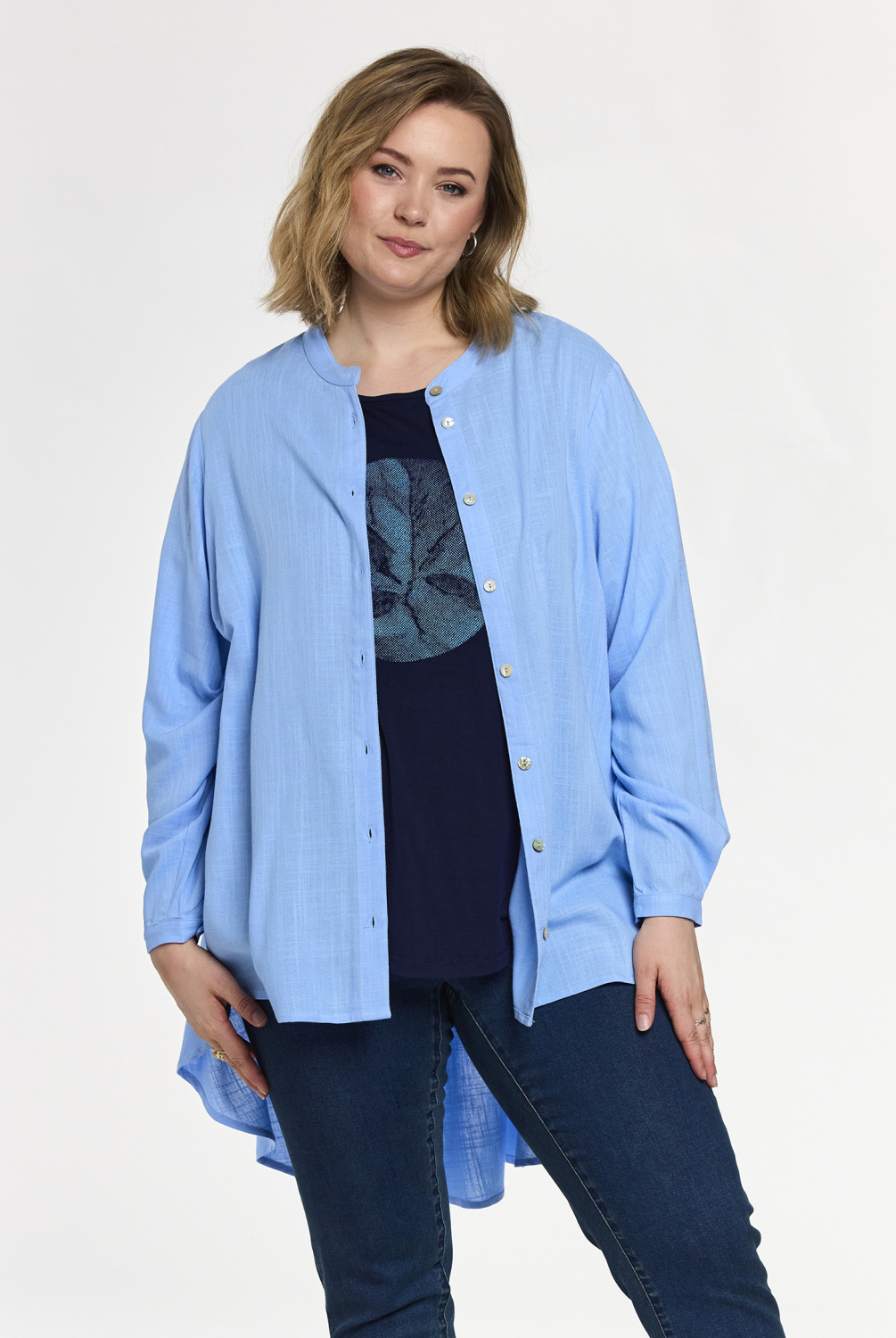 Klassieke tuniek met een losse en luchtige pasvorm met een opvallende asymmetrische zoom, wat zorgt voor een moderne en dynamische look.