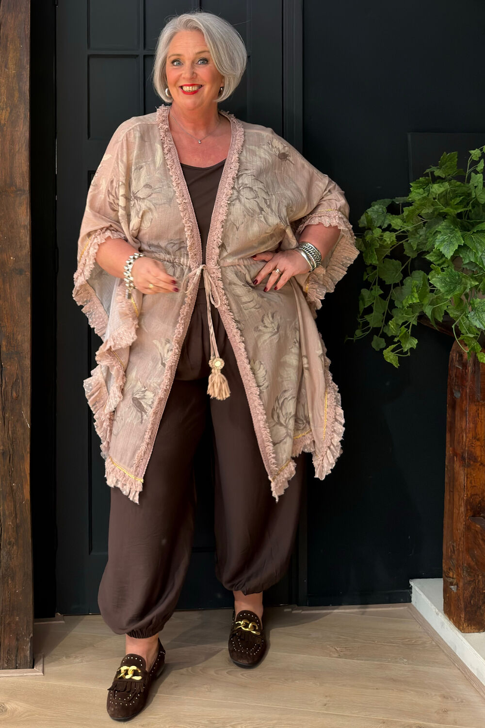 De Ruffle Kimono Ana Coralia is een krachtige dames kimono boho chic binnen de Bohemian Bloom collectie. De basis in combinatie met de bloemenprint geeft deze dames kimono boho chic een uitgesproken en elegante uitstraling.