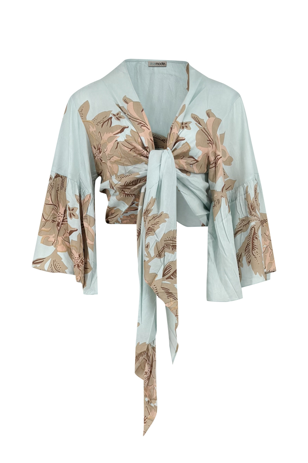 Wrap top met een V-hals, wijde mouwen, naar wens te strikken, kort model, perfecte top voor de zomer!