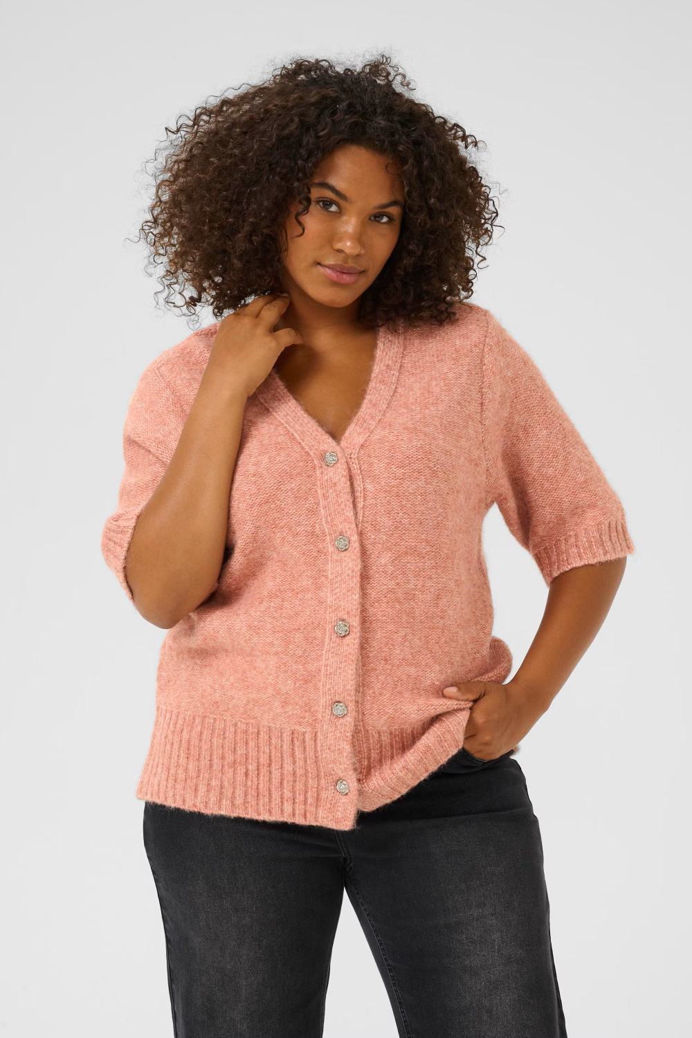 Dit damesvest heeft een relaxte pasvorm, V-hals en halve mouwen voor veelzijdig comfort. De knoopsluiting en zachte structuur maken het vest ideaal voor layering.