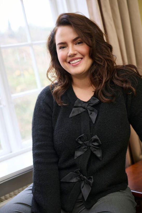 Damesvest met normale pasvorm, ronde hals en lange mouwen. Strikdetails aan de voorkant geven dit kledingstuk een elegante uitstraling en veelzijdigheid.