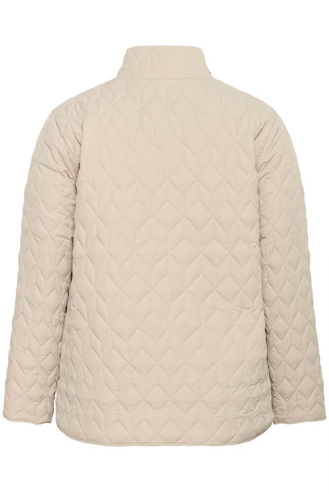 Gewatteerde jas met rechte pasvorm en opstaande kraag. Het model heeft lange mouwen, een rits aan de voorkant en schuine klepzakken met knoop. Het diamantvormige stiksel zorgt voor een gestructureerde look.