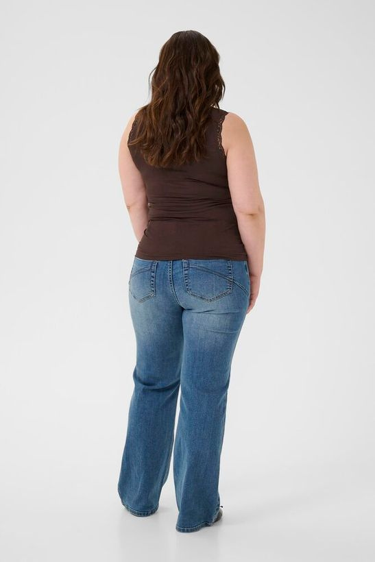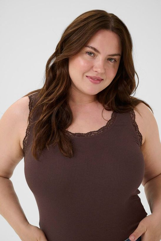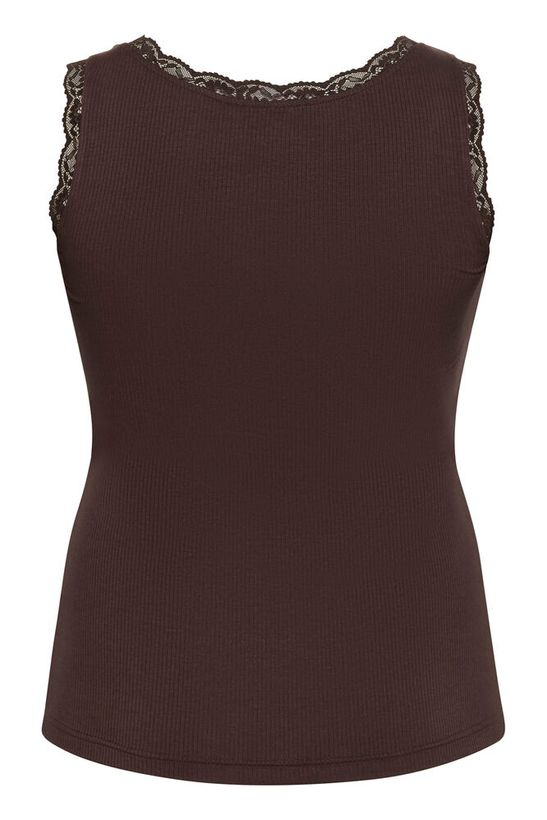 Dit dames tanktopje geeft een flatterende pasvorm dankzij het ribmateriaal en de elegante kanten afwerking langs de halslijn. Het comfortabele en rekbare model is ideaal als basisstuk of solo te dragen, perfect voor elke dag.