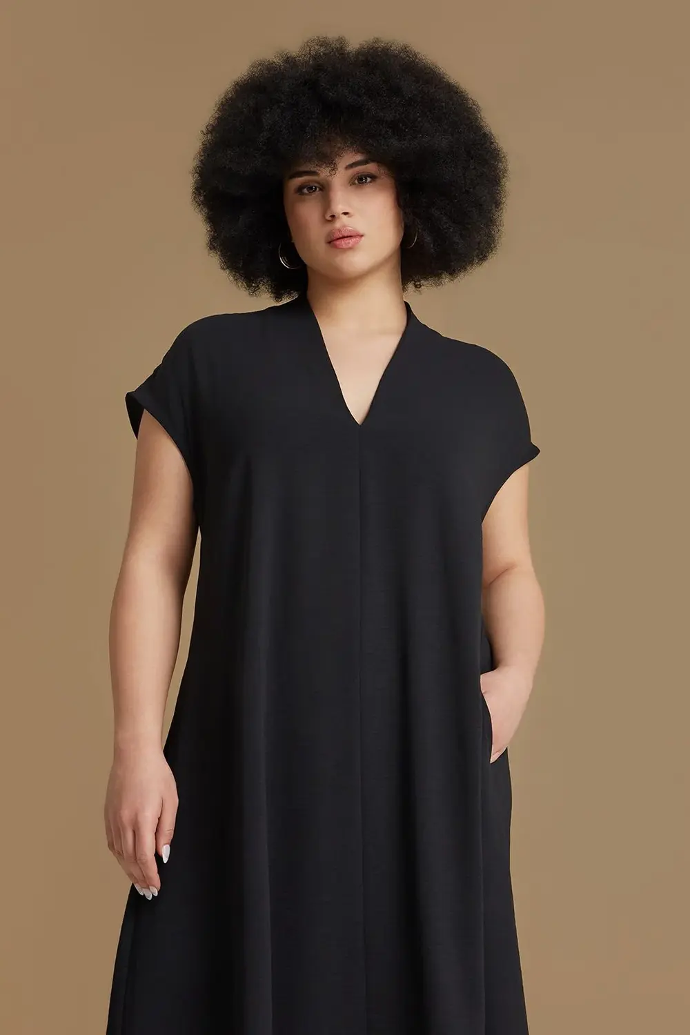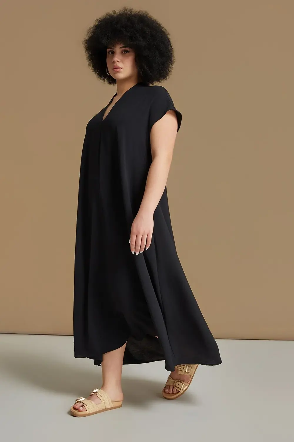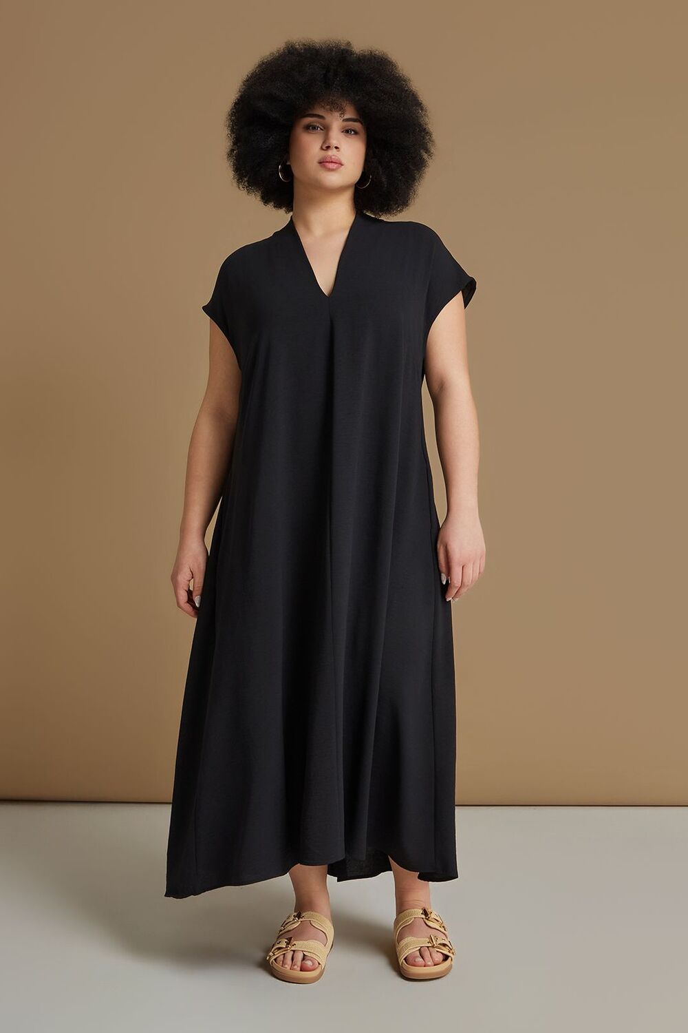 Ontworpen met strakke lijnen en een vloeiende uitstraling, combineert deze A-lijn jurk van airwashed crêpe comfort met verfijnde eenvoud. De lichtgewicht stof valt soepel langs het lichaam en zorgt voor een elegante beweging bij elke stap, terwijl de V-hals en subtiele mouwtjes de vrouwelijke uitstraling versterken. Ideaal om de hele dag te dragen: met de juiste accessoires transformeer je deze jurk moeiteloos van een casual daglook naar een meer verzorgde avondstijl. Als onderdeel van de Essentials Collection biedt dit item een tijdloos ontwerp en praktische draagbaarheid tegen een toegankelijke prijs. ● Gemaakt van luchtige, zacht aanvoelende airwashed crêpe ● V-hals met delicate kapmouwtjes ● Flatterende A-lijn voor moeiteloze elegantie ● Comfortabele pasvorm met soepele valling ● Onderhoudsvriendelijke, kreukbestendige stof ● Onderdeel van de Essentials Collection – kwaliteit die lang meegaat Ruglengte: 128,5 cm Borst: 105 cm Taille: 82 cm Heupen: 116 cm