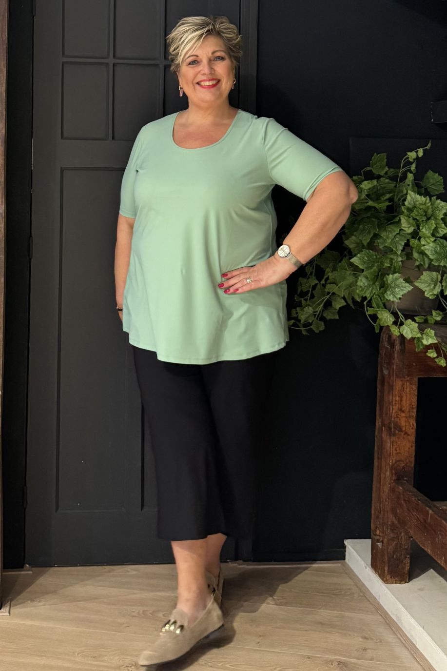 Plusbasics is een Nederlands modelabel dat streeft naar duurzame kleding voor stijlvolle vrouwen met een maatje meer (maat 40 t/m 54). De kleding is van hoge kwaliteit, heerlijk draagbaar, eindeloos te combineren en wordt op eerlijke en milieuvriendelijke wijze geproduceerd. De collecties zijn modulair en Plusbasics biedt een Never Out of Stock programma aan voor al hun bestsellers. Als je kiest voor Plusbasics, kies je bewust. FROMMĆS heeft het predicaat Goldstore en biedt ten alle tijden de volledige collectie aan in de winkels en online.