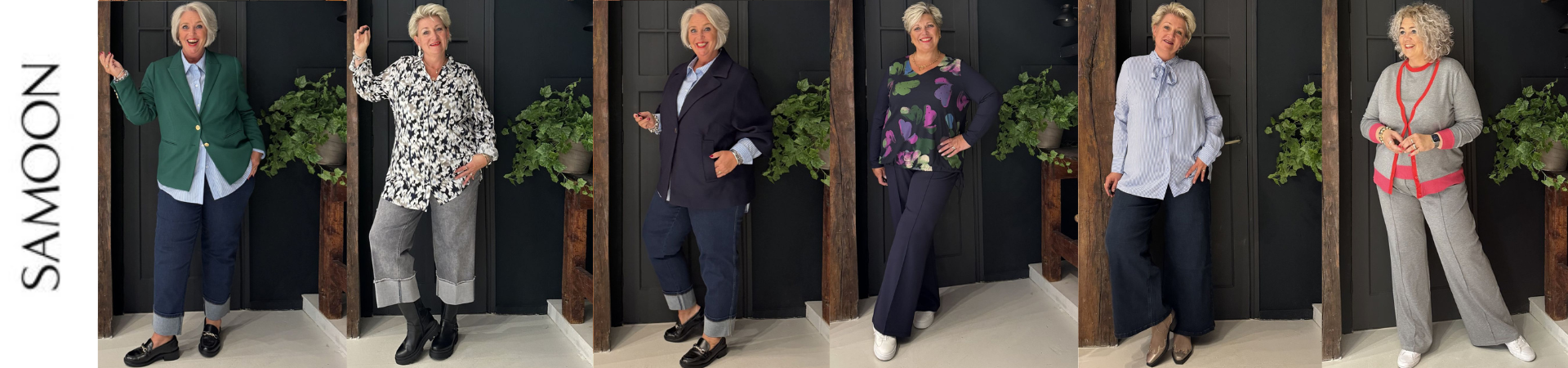 SAMOON staat voor geluk, frisheid en vrouwelijkheid. Het motto BECAUSE I AM HAPPY belichaamt tevredenheid met jezelf, het eigen lichaamsbeeld en natuurlijk met mode. De SAMOON-klant onderstreept graag haar zelfvertrouwen met mode in geweldige silhouetten en bijzondere details – altijd met de twist tussen sportiviteit & vrouwelijkheid.