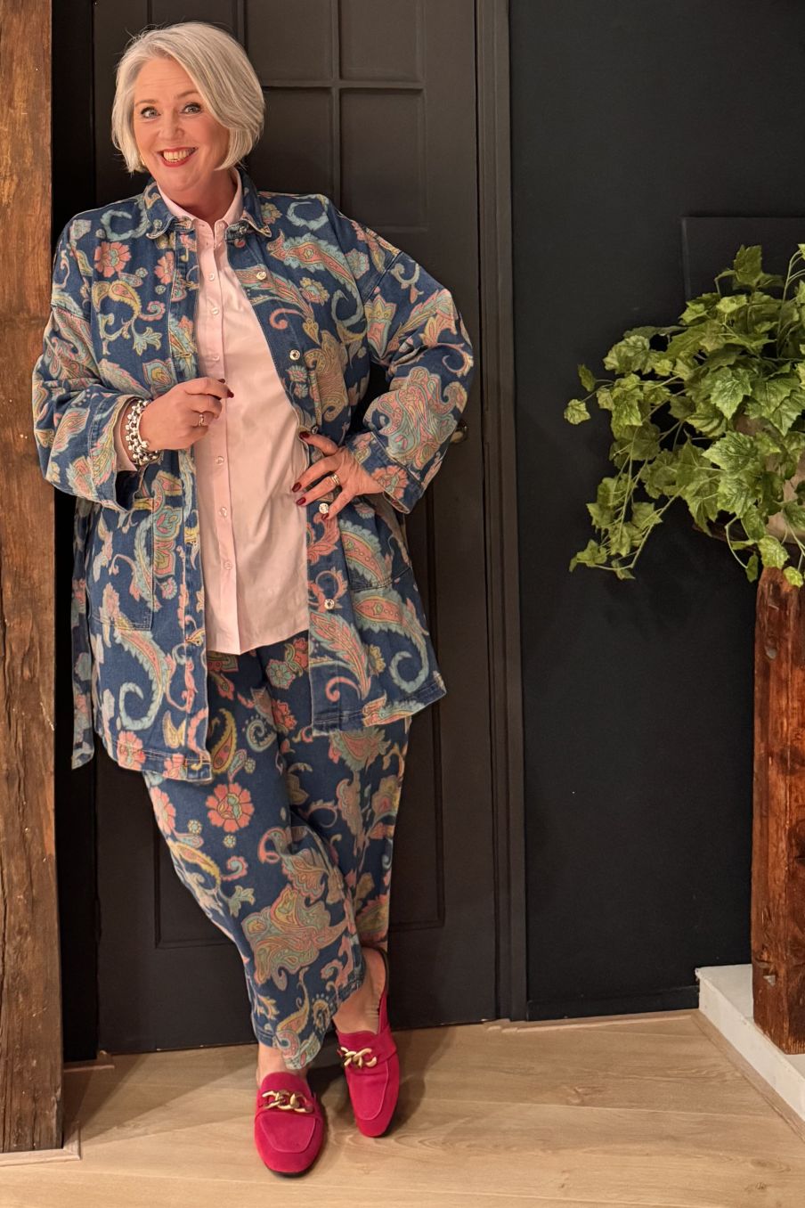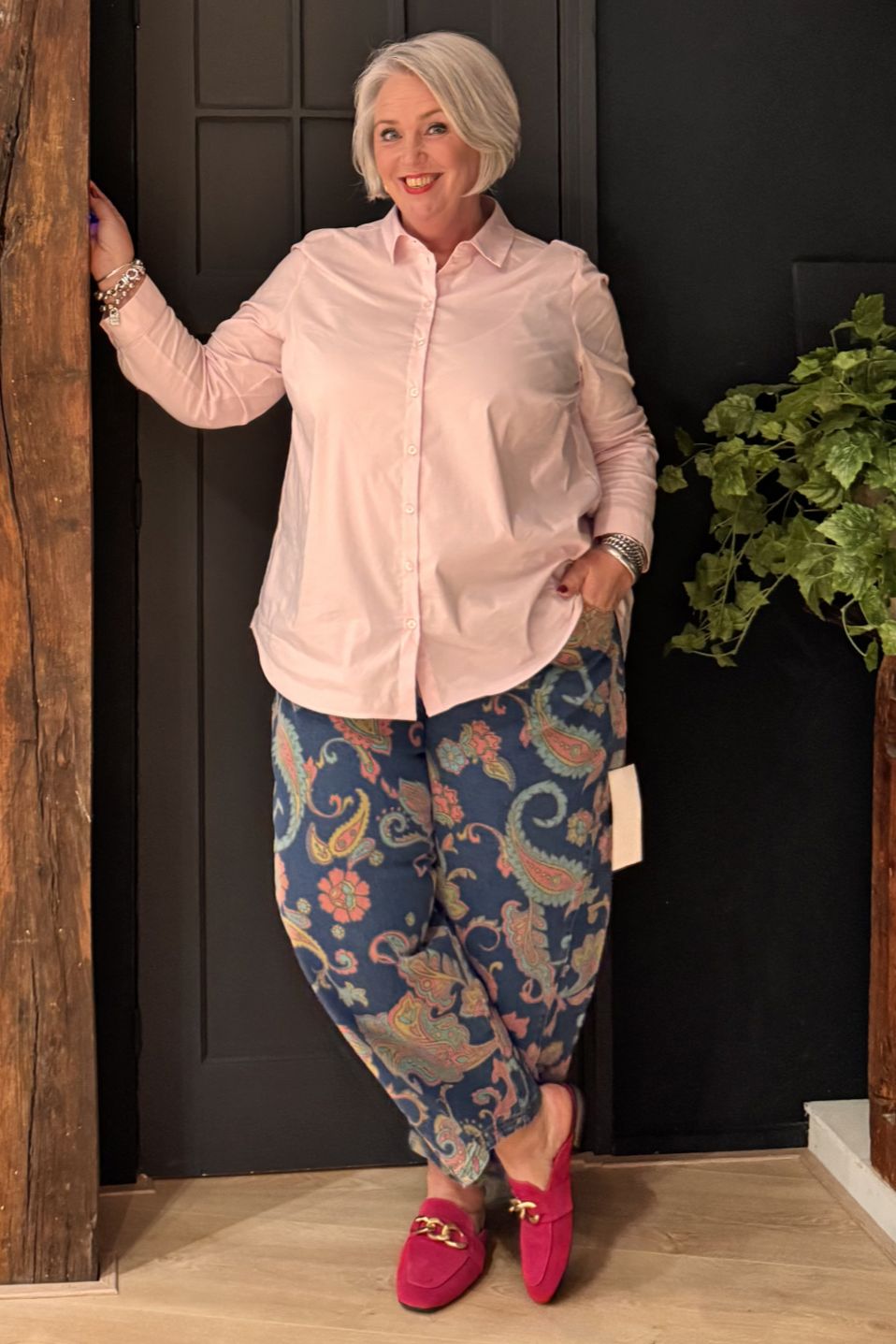 Broek met wijde pijpen en paisleyprint. Super comfortabel met een gestructureerde pasvorm. Wasvoorschrift: 30 graden wassen
