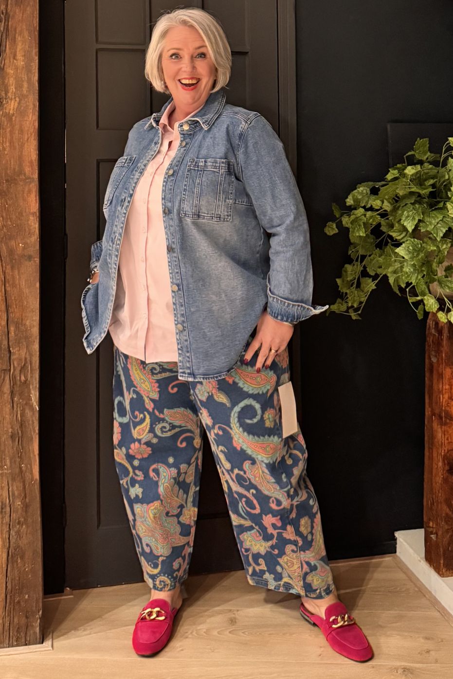Never Fully Dressed Denim Paisley Barrel Leg Jeans