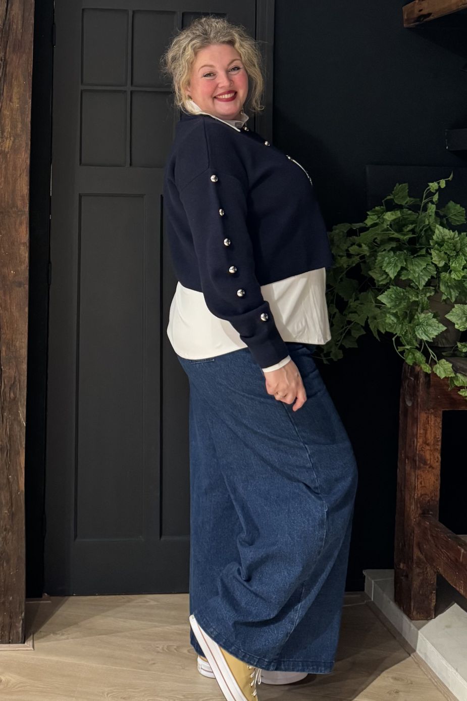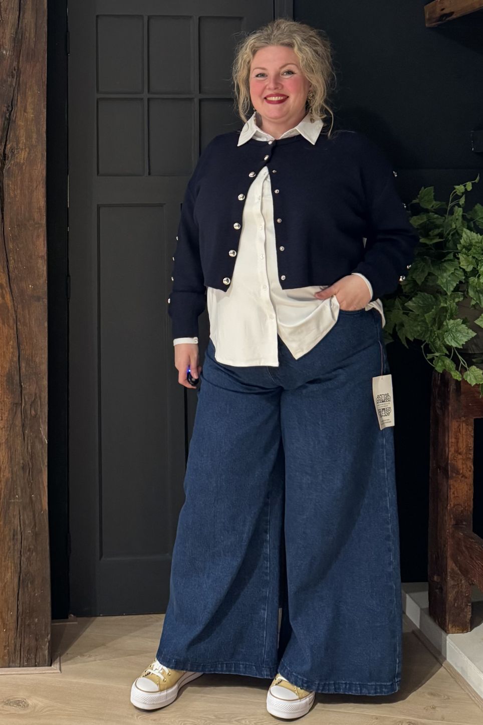 Een zacht, gebreid vest met knoopsluiting - perfect voor de overgangsperioden tussen de seizoenen! Heerlijk zwaar en luxueus, met zilverkleurige studs. Wasvoorschrift: 30 graden wassen
