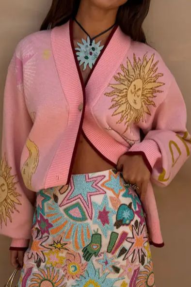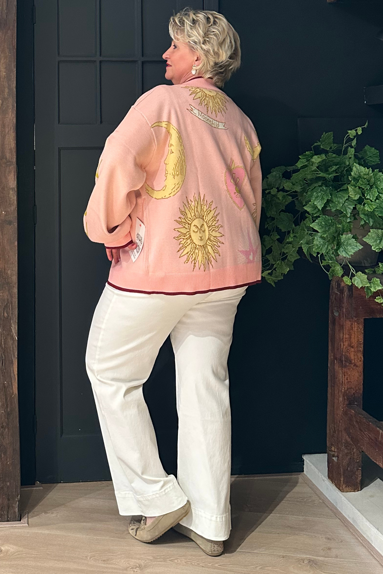 Een licht vest met dikkere ribboorden aan de zoom die een licht bomberjack-achtig silhouet creëren. Gemaakt van een zachte gebreide stof met contrasterende bruine biezen en prachtige jacquardmotieven. Bevat knoopsluiting. Wasvoorschrift: op 30 graden wassen. Ook in het blauw te verkrijgen!