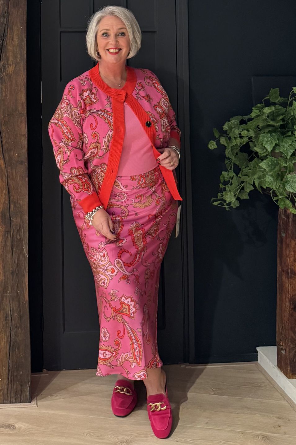 Rok met paisleyprint op een opvallende roze basis! De relaxte pasvorm bevat een elastische tailleband. Wasvoorschrift: 30 graden wassen