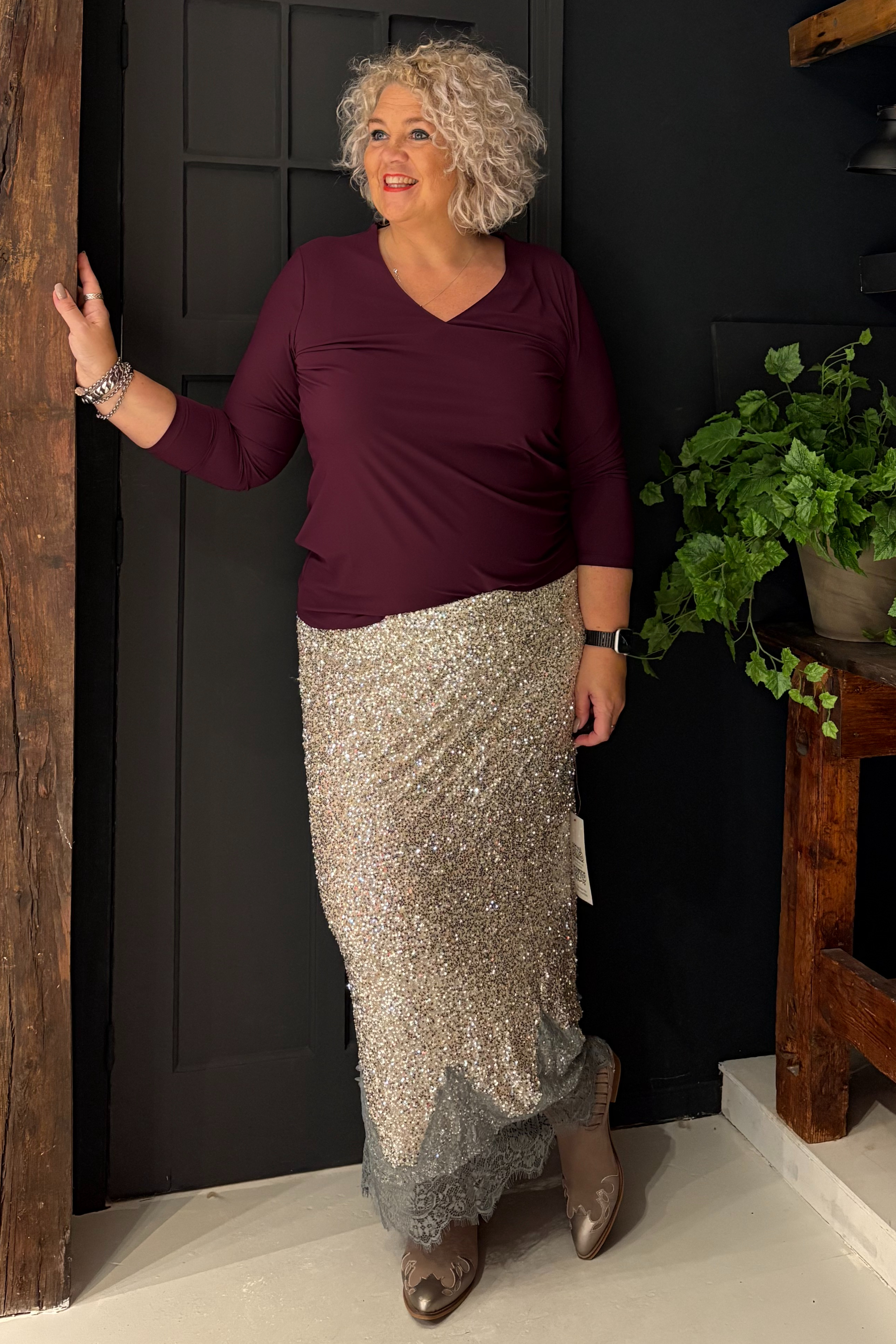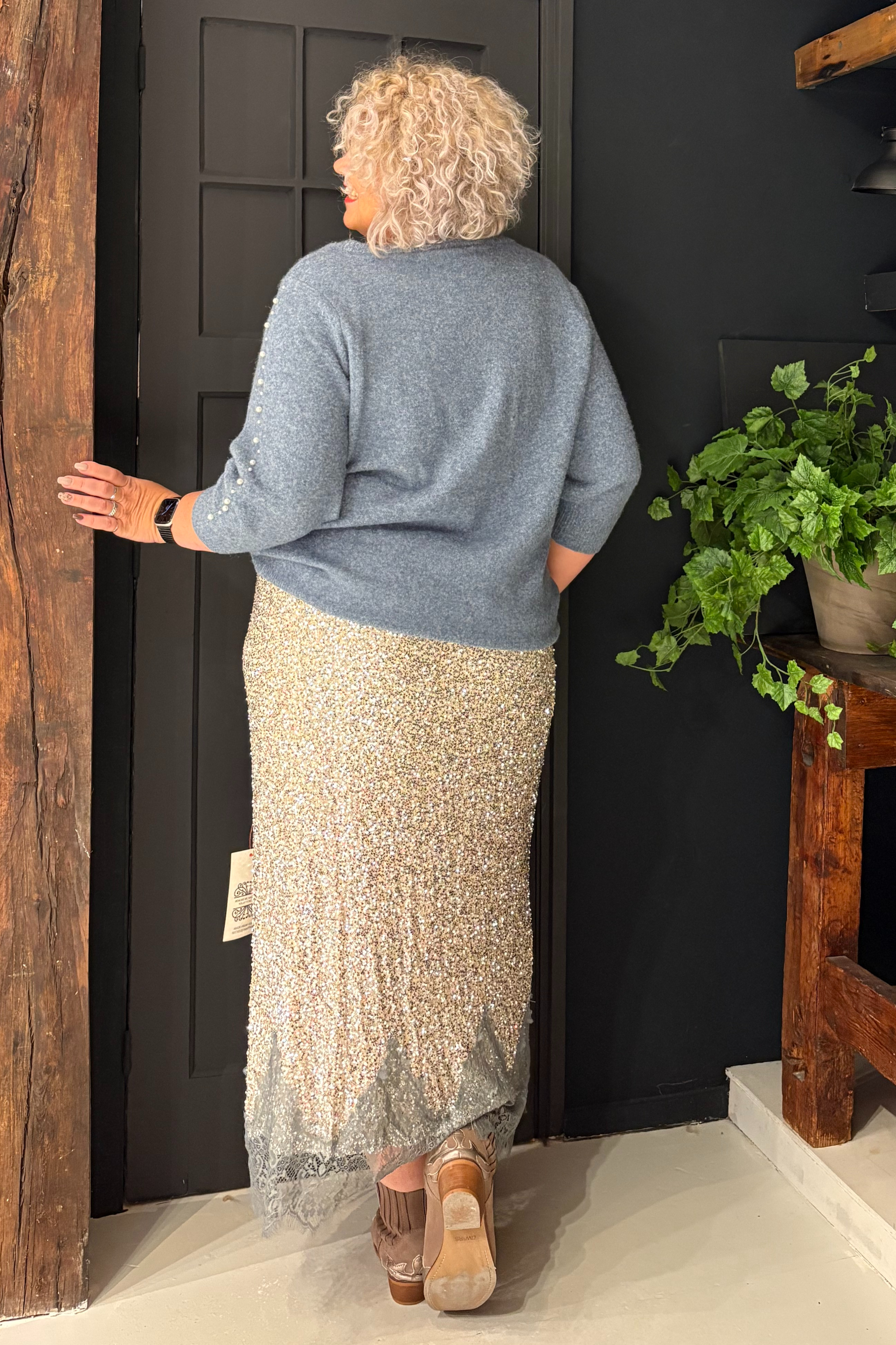 Never Fully Dressed Skirt Silver Sequin Midi Maeva
