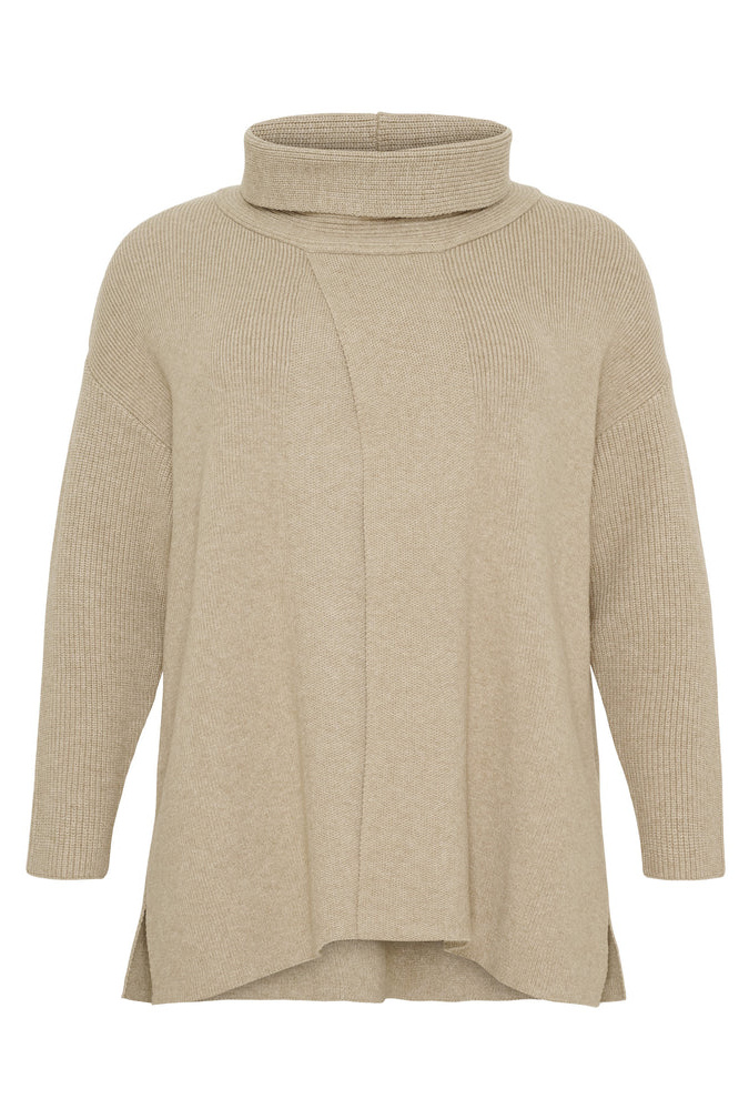 Zachte en knusse, luxe gebreide poncho die uw look comfort en stijl geeft. De poncho heeft kleine openingen aan beide zijden en een opening aan de voorkant. Opgerolde kraag en lange mouwen. Draag hem als extra laag over uw outfit.