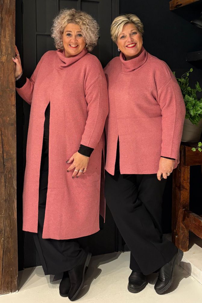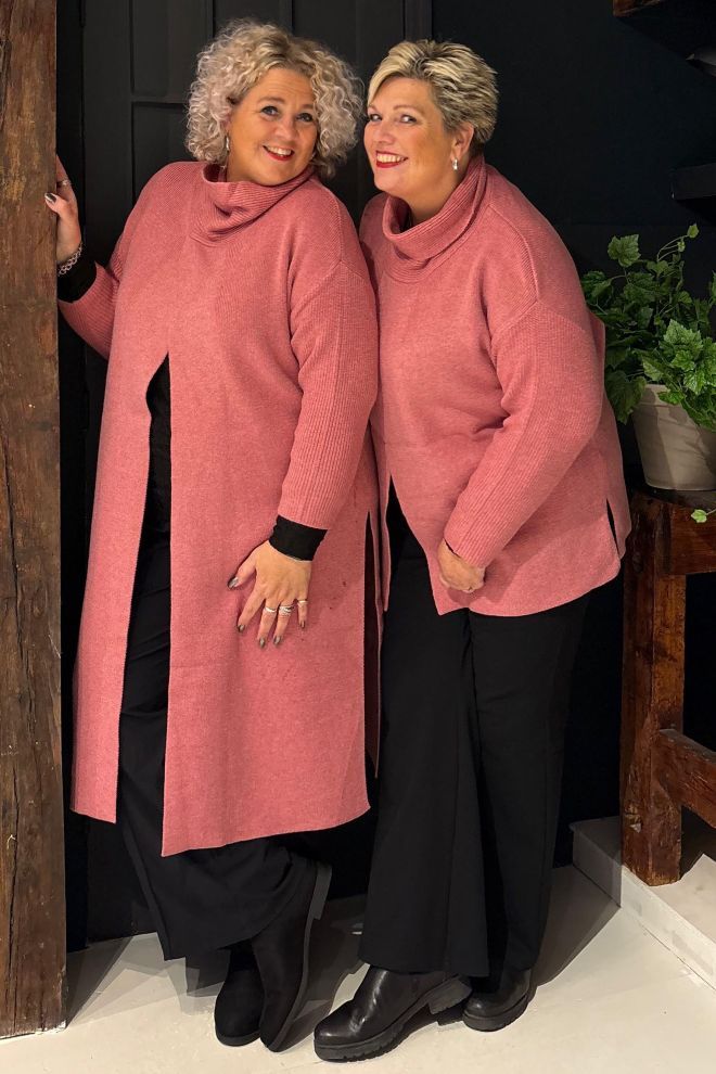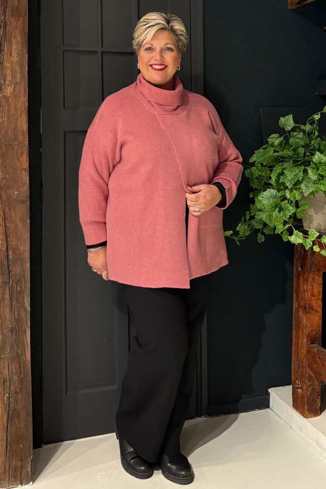 Zachte en knusse, luxe gebreide poncho die uw look comfort en stijl geeft. De poncho heeft kleine openingen aan beide zijden en een opening aan de voorkant. Opgerolde kraag en lange mouwen. Draag hem als extra laag over uw outfit.
