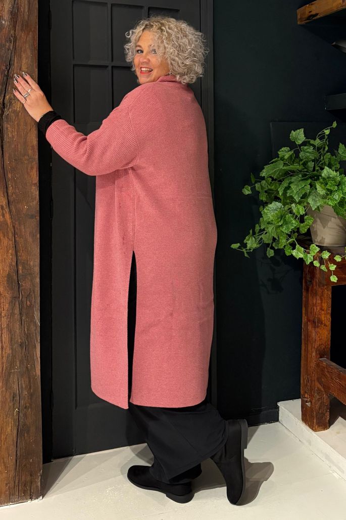 Zachte en knusse, luxueuze, lange gebreide poncho die uw look comfort en stijl geeft. De poncho heeft openingen aan beide zijden en een opening aan de voorkant. Opgerolde kraag en lange mouwen. Draag hem als extra laag over uw outfit.