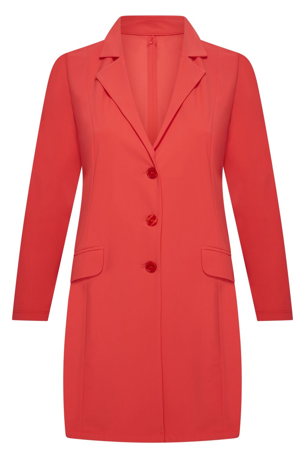 Lange ongevoerde blazer met revers kraag.<br />