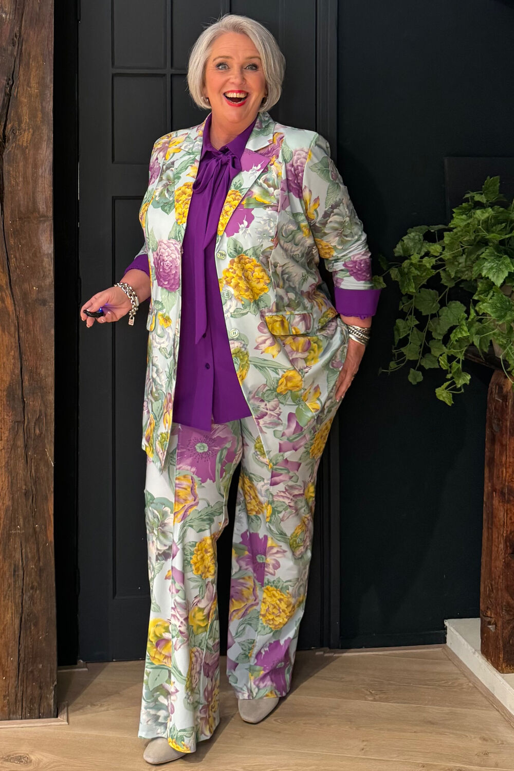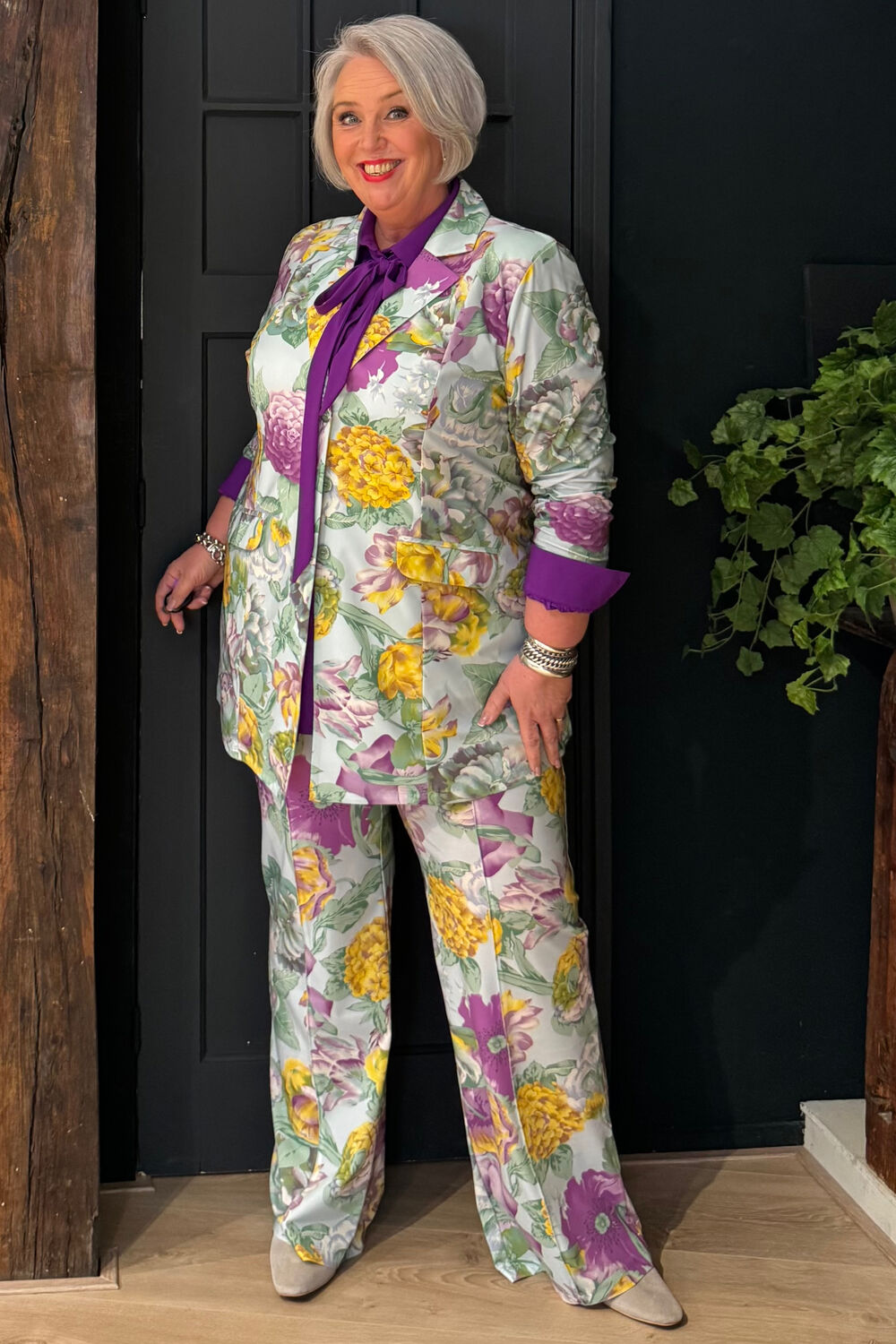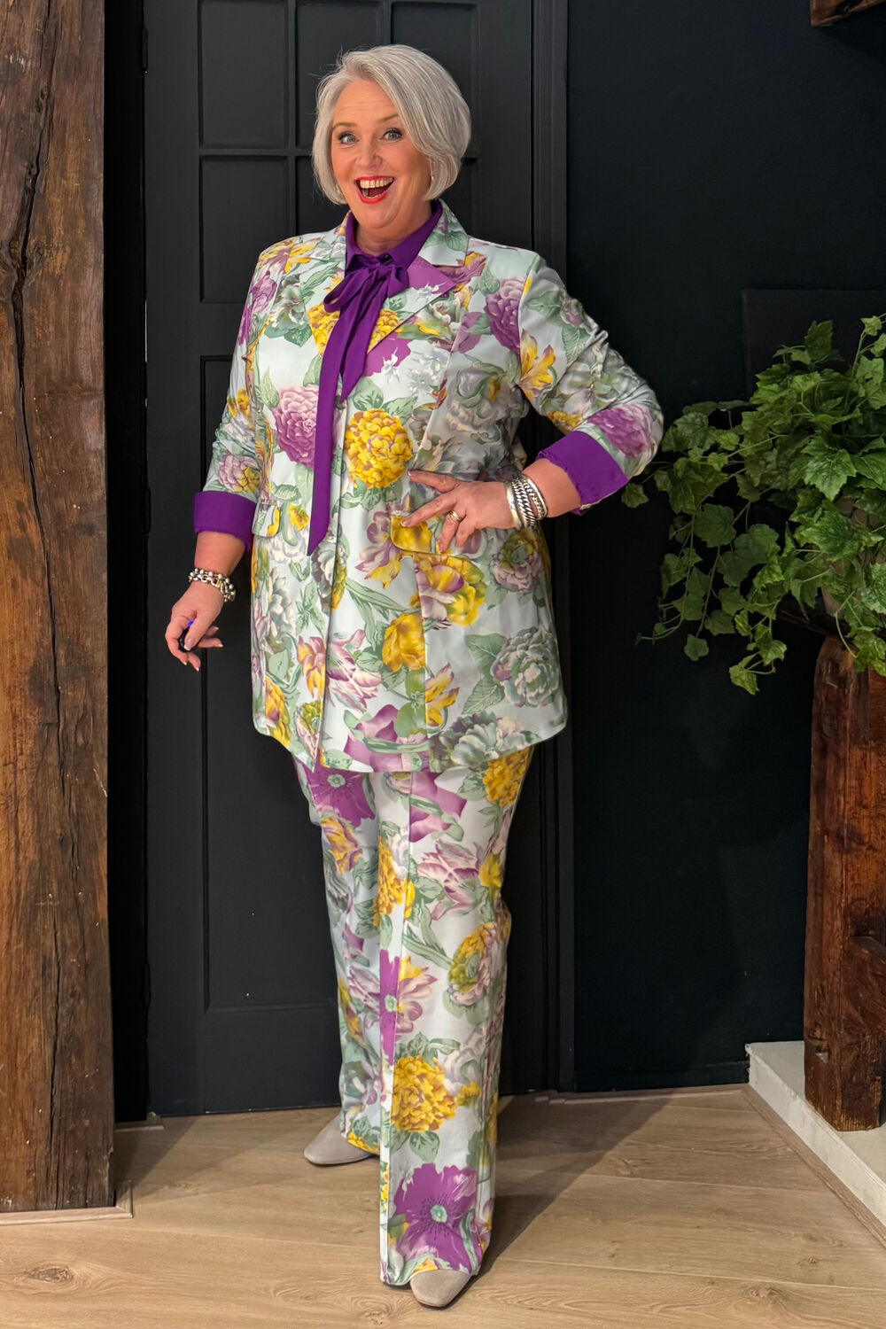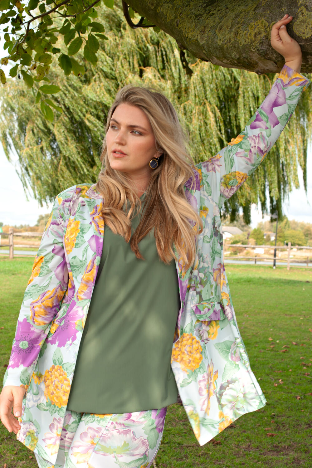 Let op; dit is een nieuw Plusbasics item; MIDI, de lengte is 80 cm bij maat 46! Midi lengte ongevoerde blazer met reverskraag. Lange mouwen met schoudervulling. Aan de voorzijde drie knopen en twee klepzakken. Engelse naad op rugpand.