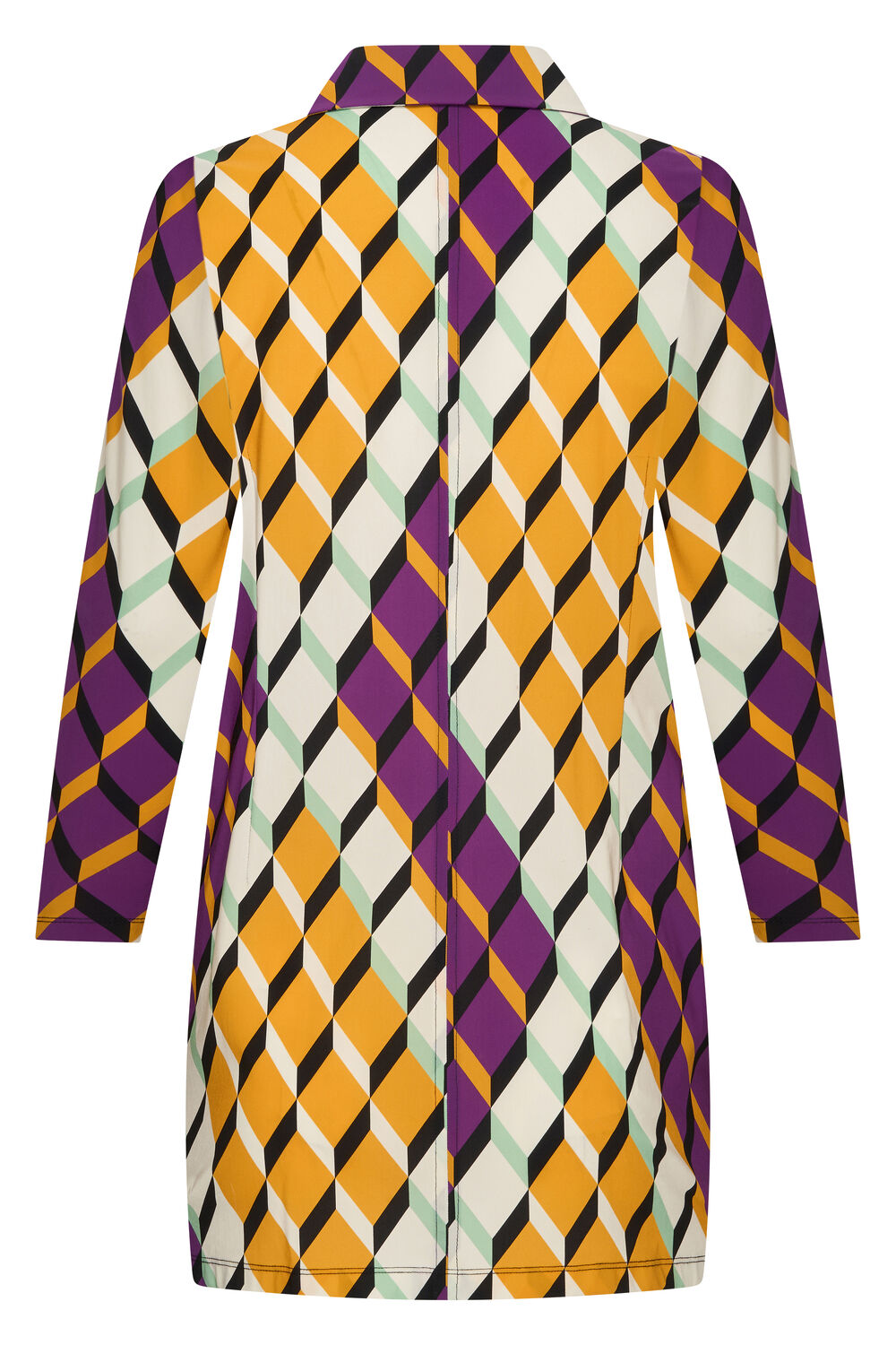 Let op; dit is een nieuw Plusbasics item; MIDI, de lengte is 80 cm bij maat 46! Midi lengte ongevoerde blazer met reverskraag. Lange mouwen met schoudervulling. Aan de voorzijde drie knopen en twee klepzakken. Engelse naad op rugpand.