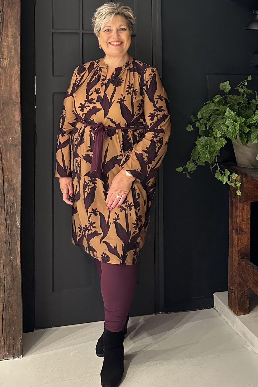Plusbasics Mao Dress Belt LS Elegant Floral
