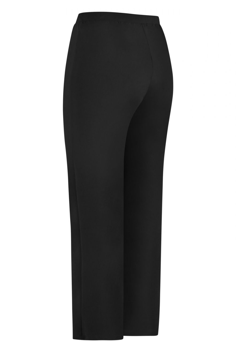 Slanke legging broek met vanaf knie flair en wijde pijp onderaan. Elastieken taille band. In zwaardere kwaliteit travelstof.
